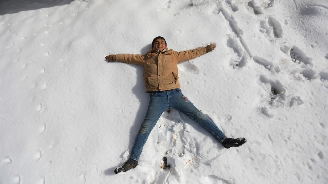 Türkiye sınırına yakın bölge ve çevresinde, kar kalınlığı 15 santimetreyi geçerken, çocuklar da karın keyfini çıkardı.