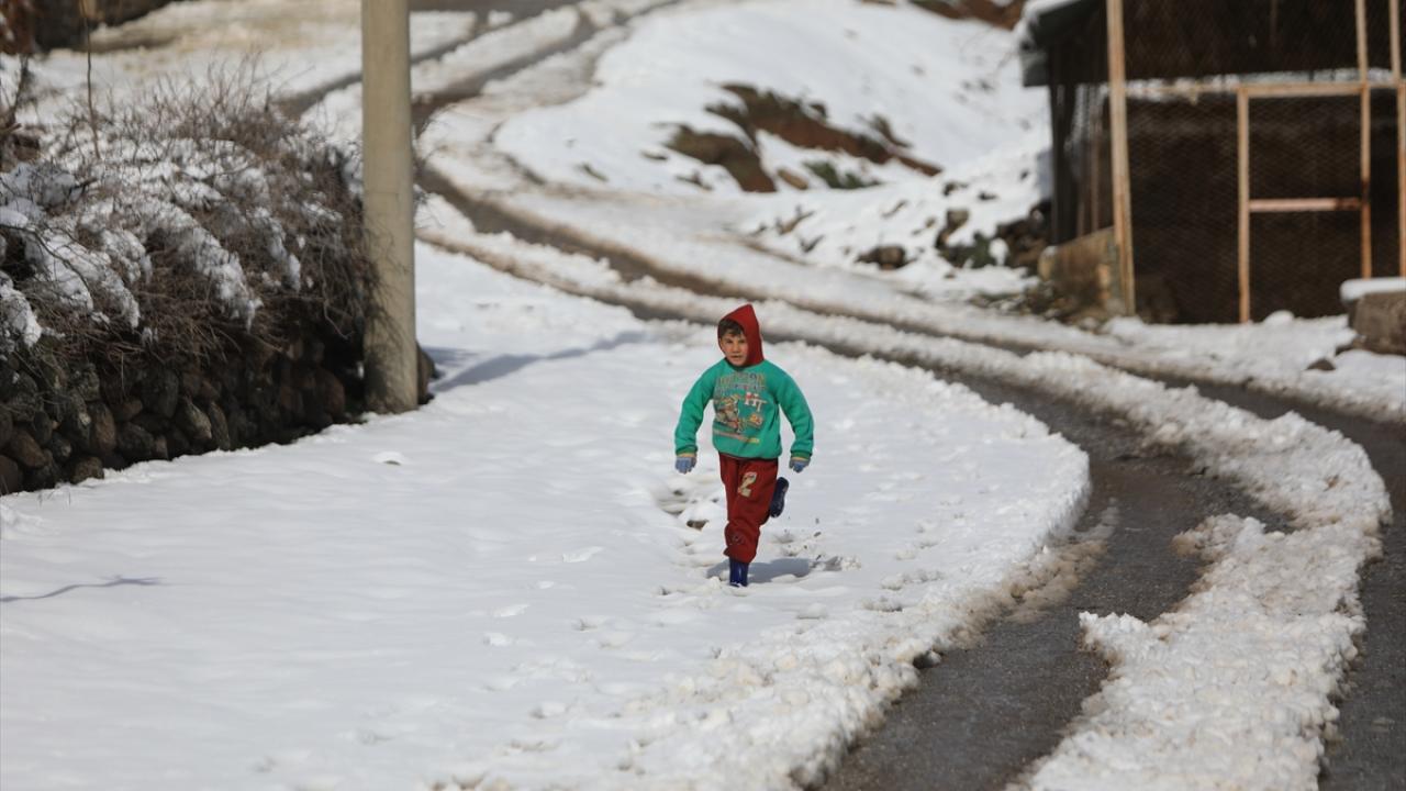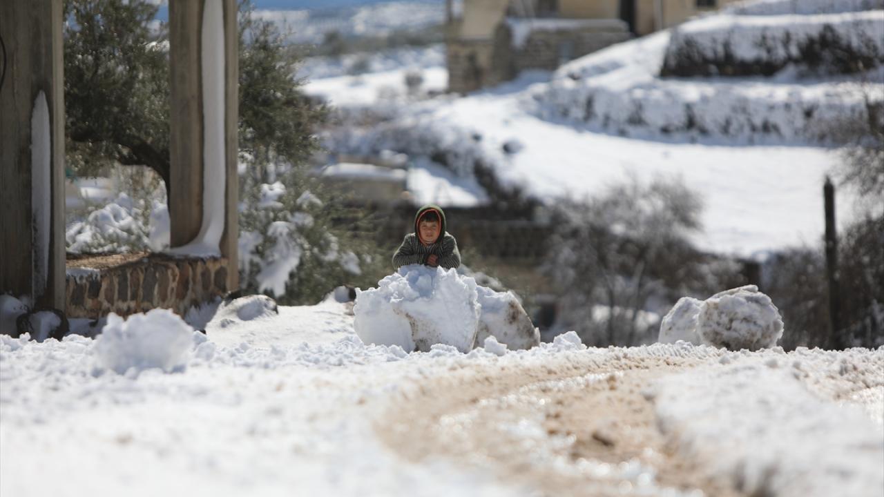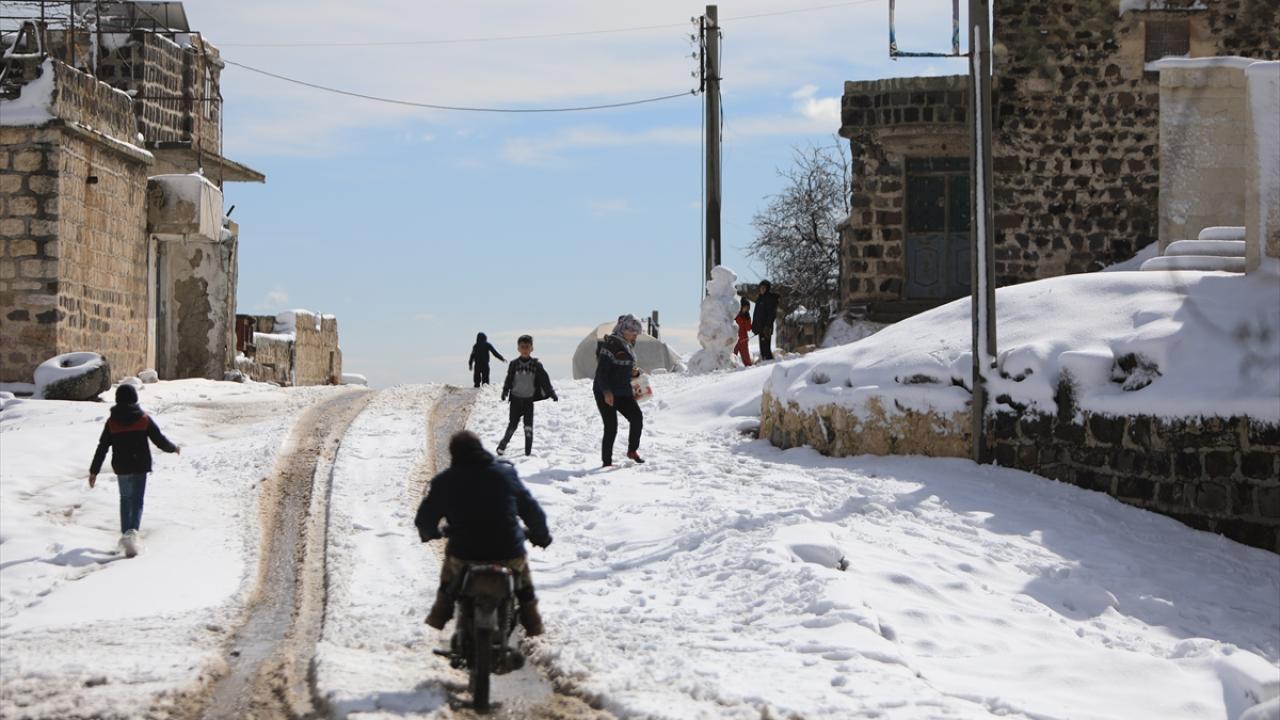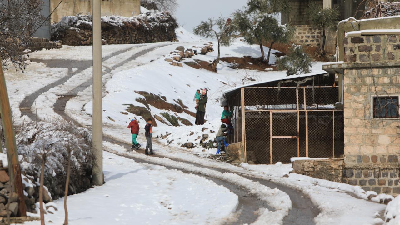 Suriye'nin kuzeybatısında yer alan Afrin ilçesinde yılın ilk karı yağdı.