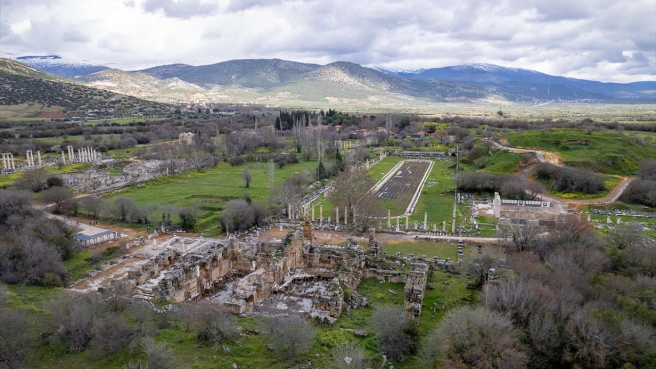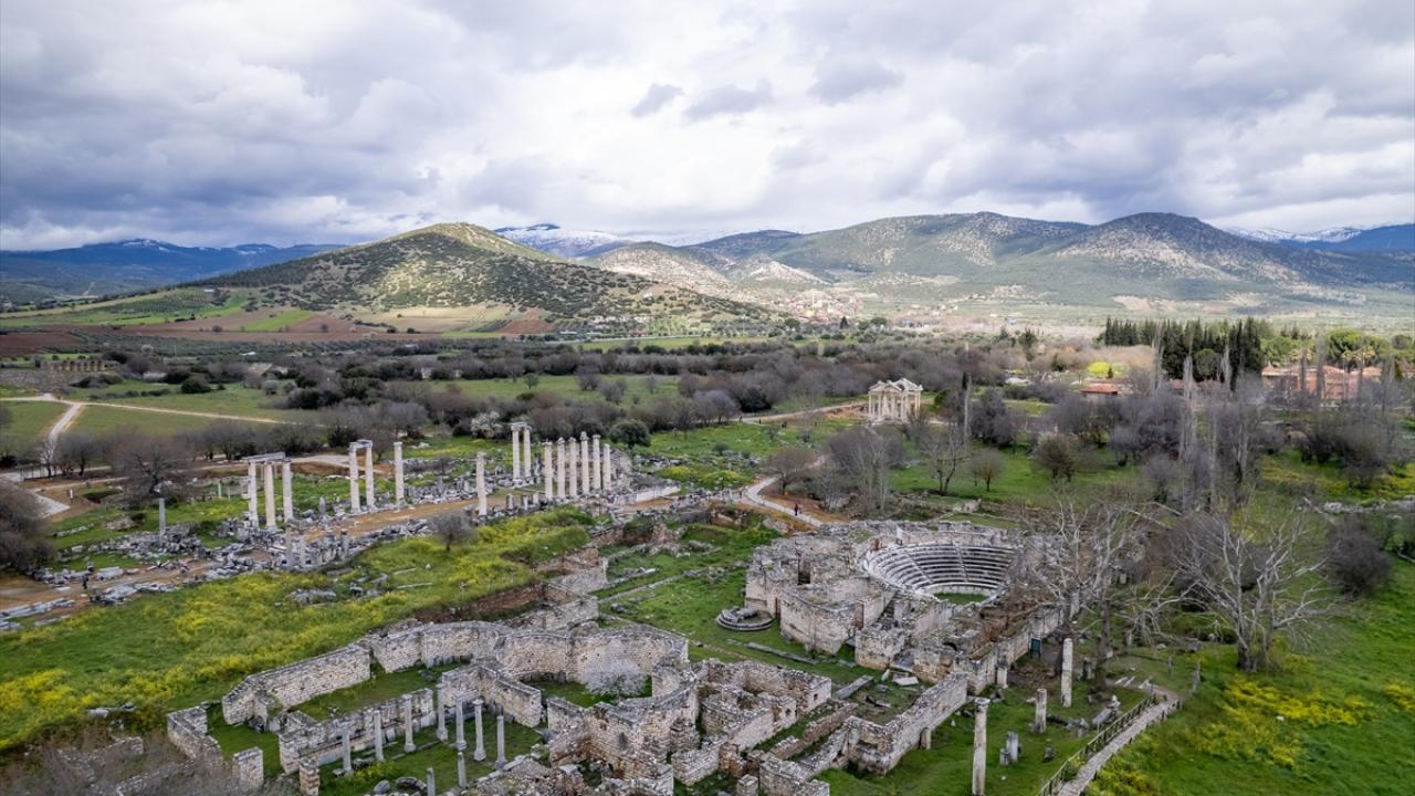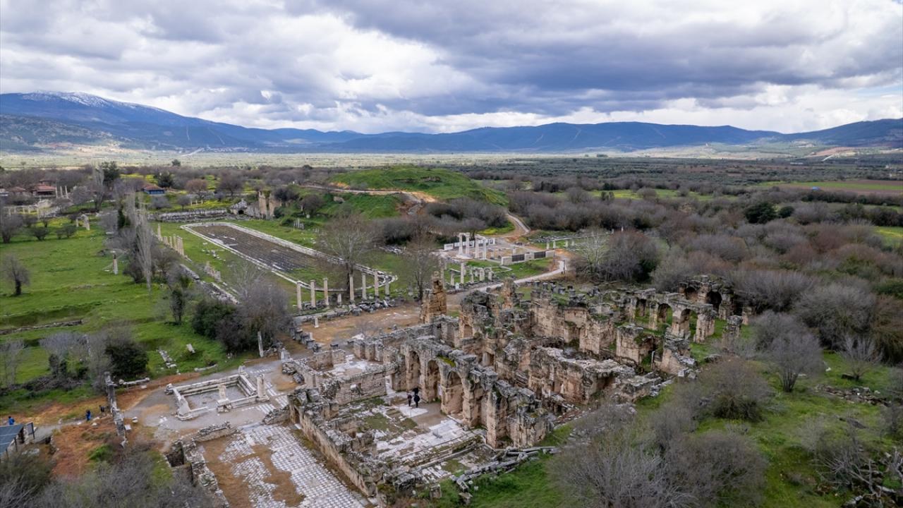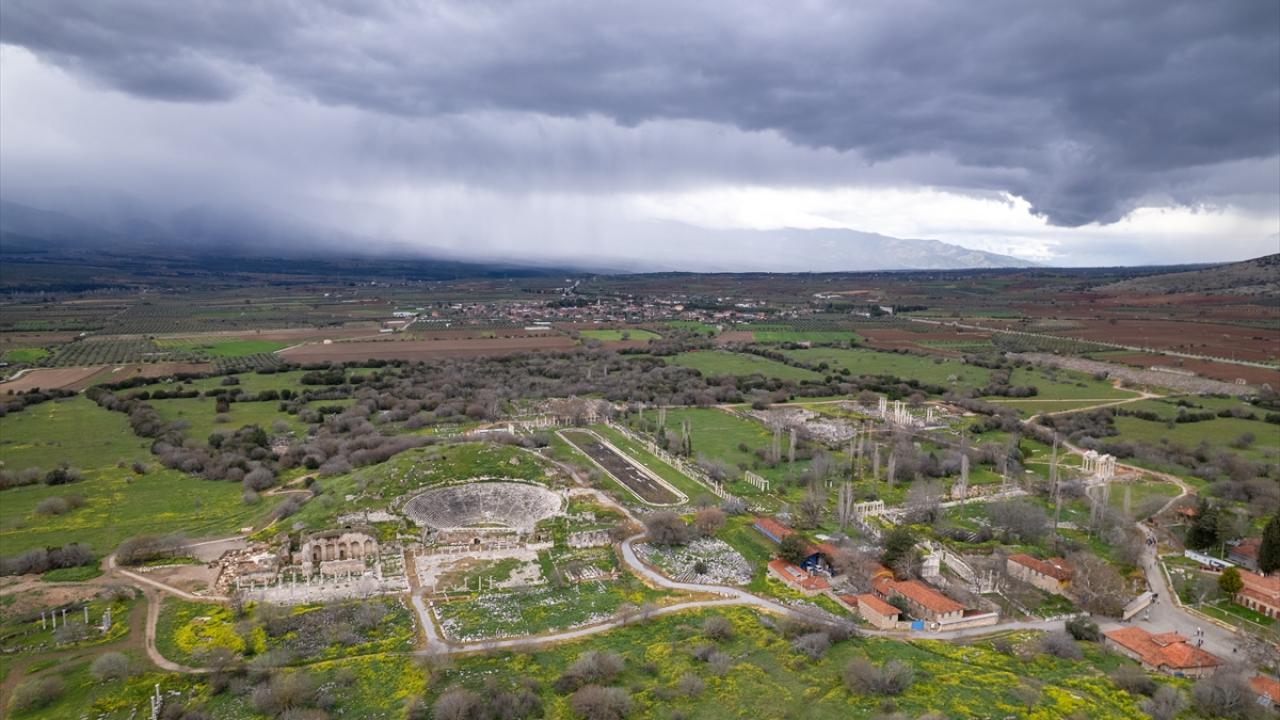 Aydın'ın Karacasu ilçesinde yer alan ve UNESCO Dünya Mirası Listesi'nde bulunan Afrodisias Antik Kenti'nde tarihi yapılar yeşeren doğa ile dikkat çekiyor.