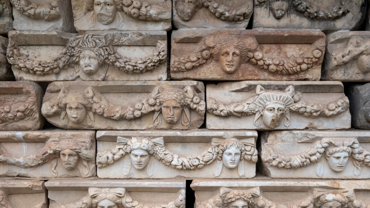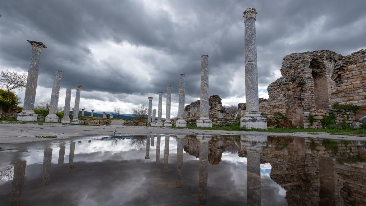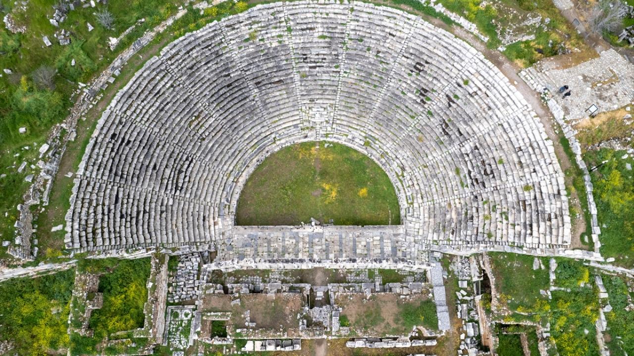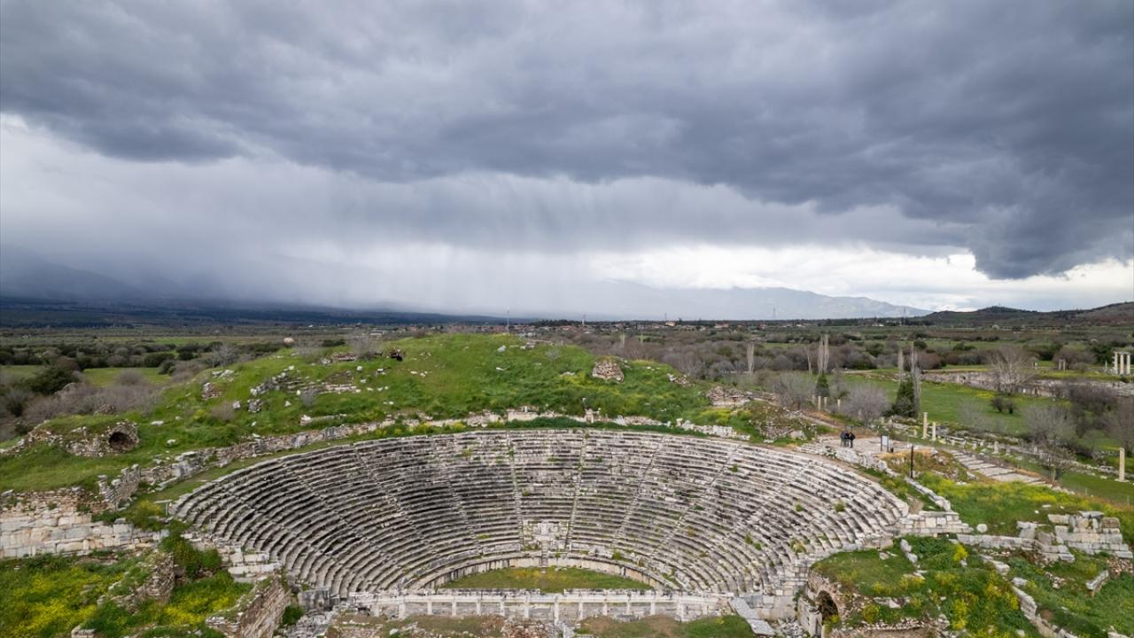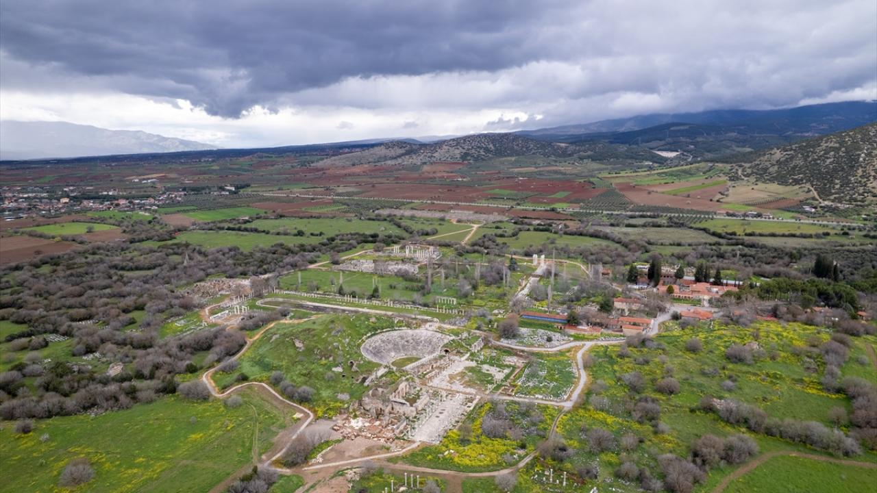 Aydın'ın Karacasu ilçesinde yer alan ve UNESCO Dünya Mirası Listesi'nde bulunan Afrodisias Antik Kenti'nde tarihi yapılar yeşeren doğa ile dikkat çekiyor.