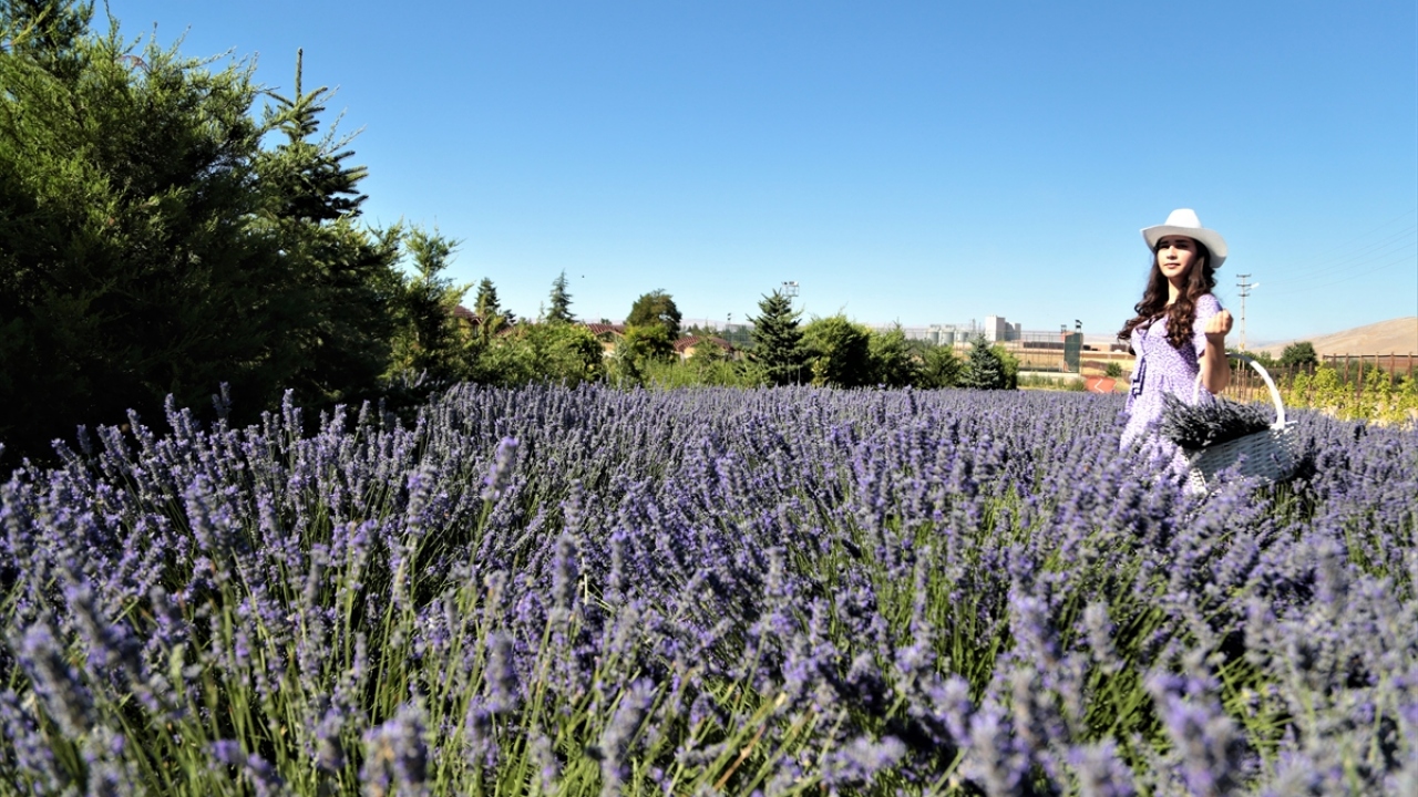 Tek parçada 380 dekarlık alana kurulan, güzel görüntüsü ve hoş kokusuyla insanları kendisine çeken Rabia Parkı`ndaki lavanta tarlası, ziyaretçilerinin ilgisini çekiyor.