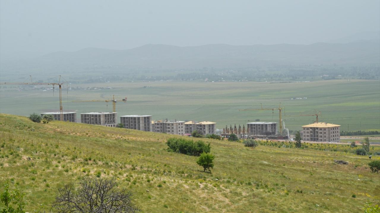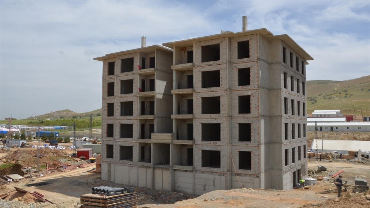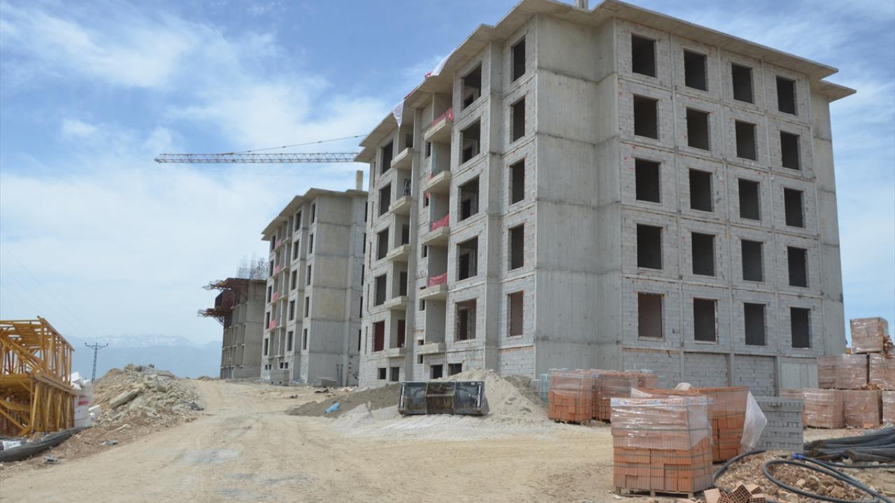 Depremlerden en fazla etkilenen yerleşim birimleri arasında yer alan Kahramanmaraş'ın Afşin ilçesinde Toplu Konut İdaresince (TOKİ) yapılan kalıcı konutların inşası devam ediyor.