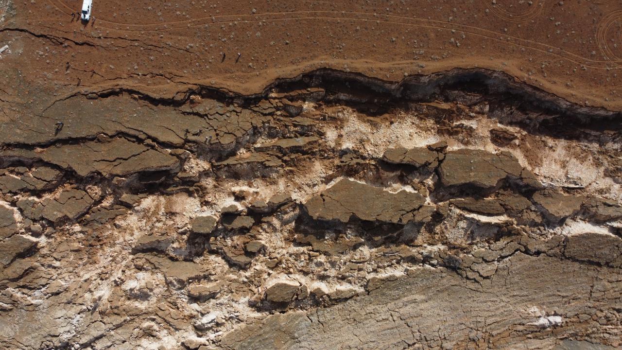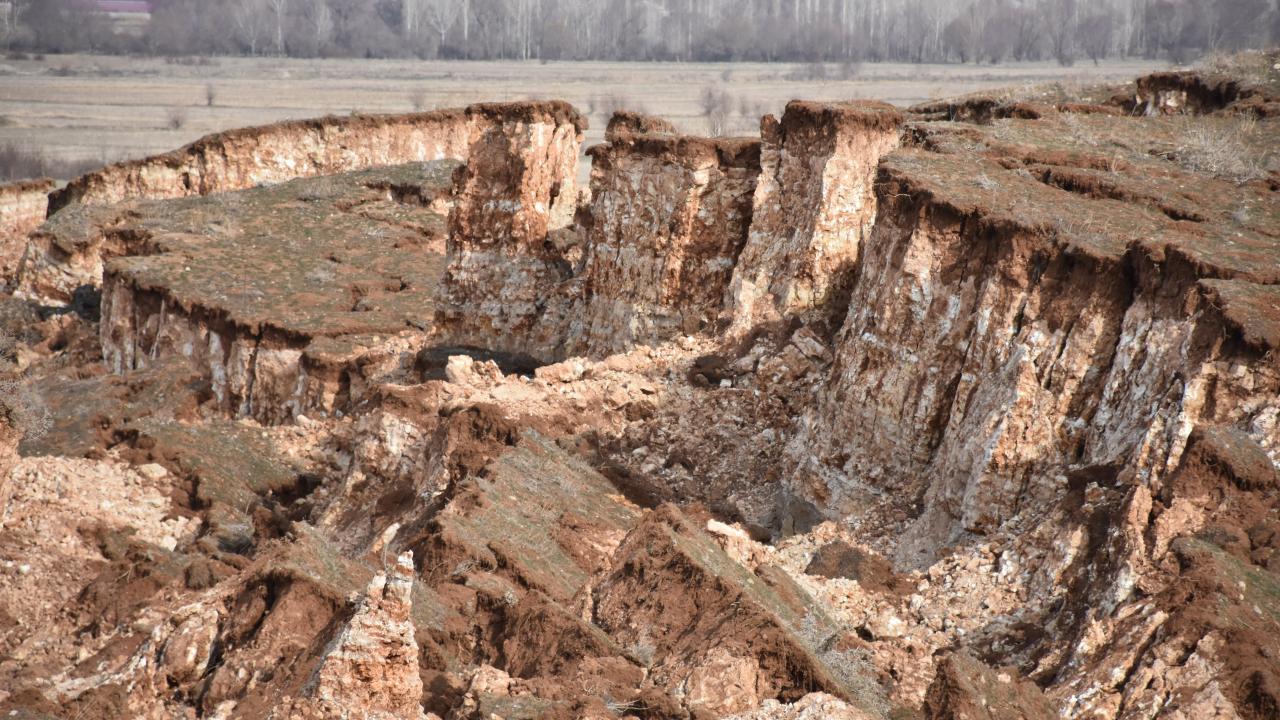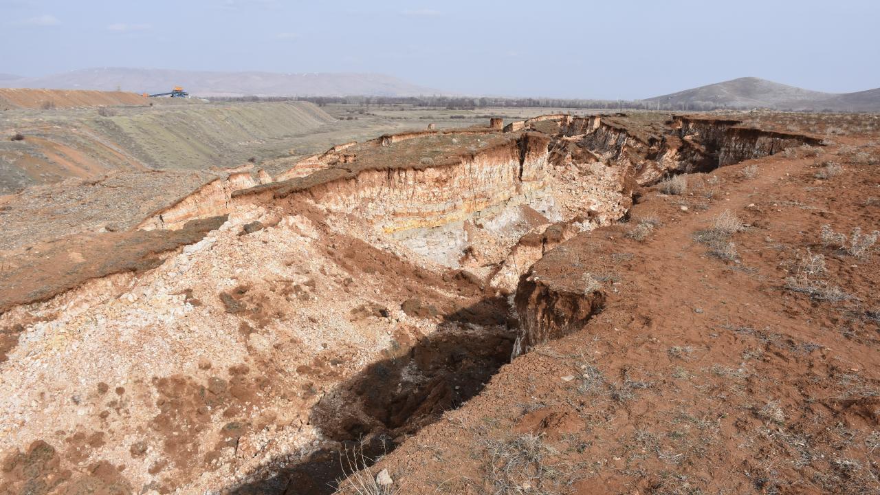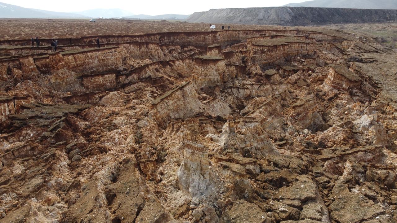 Derinliği 15, genişliği 50 ve uzunluğu 150 metreyi bulan yarık havadan görüntülendi.