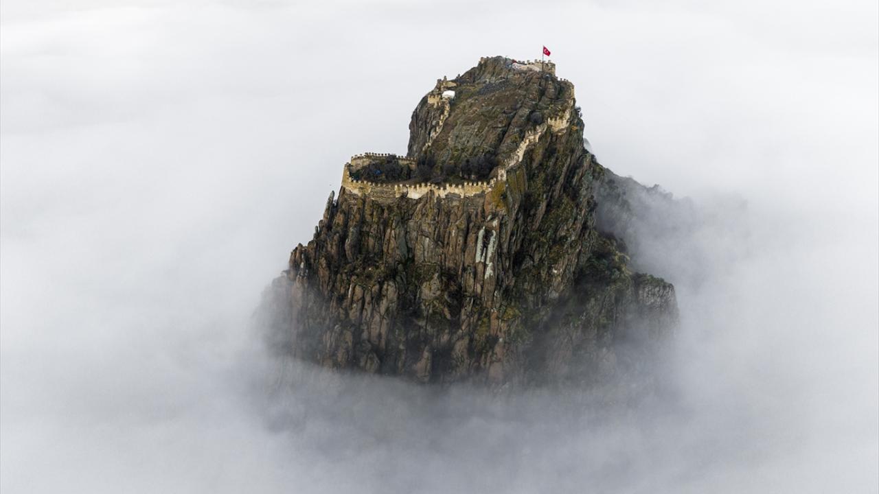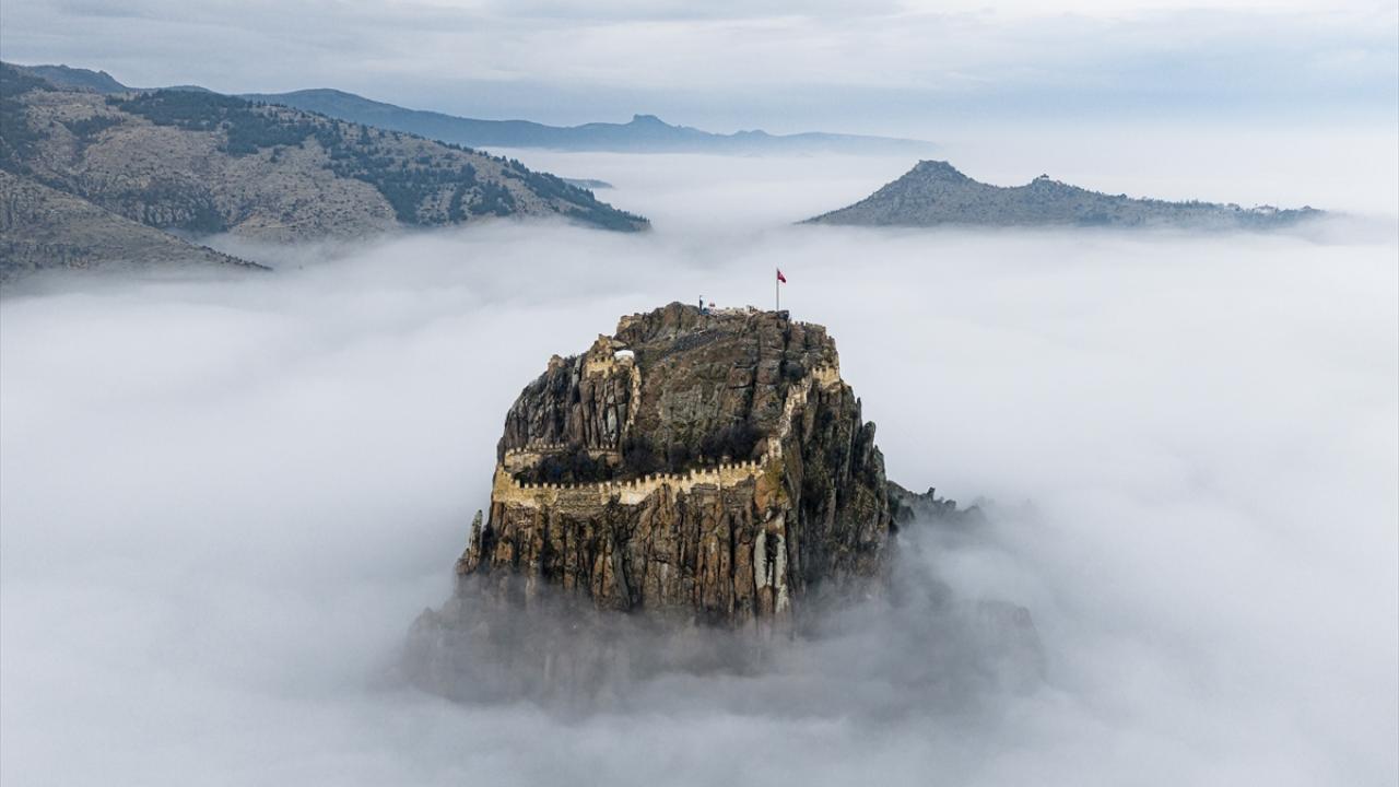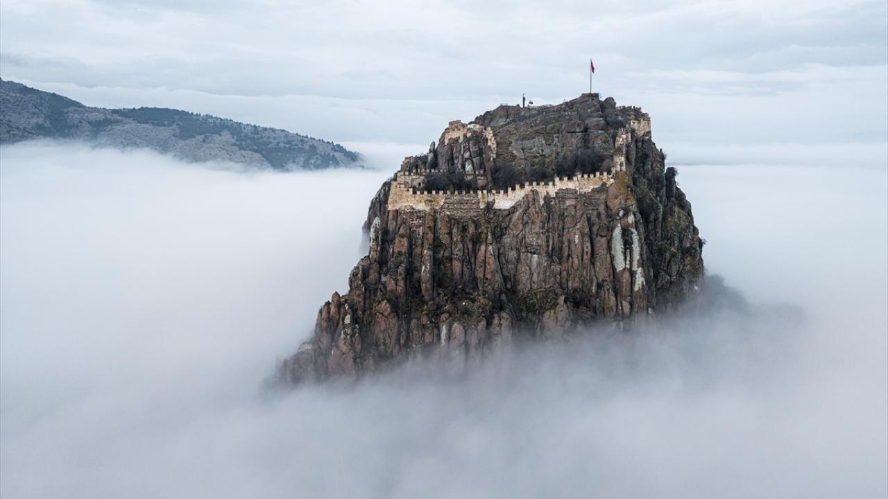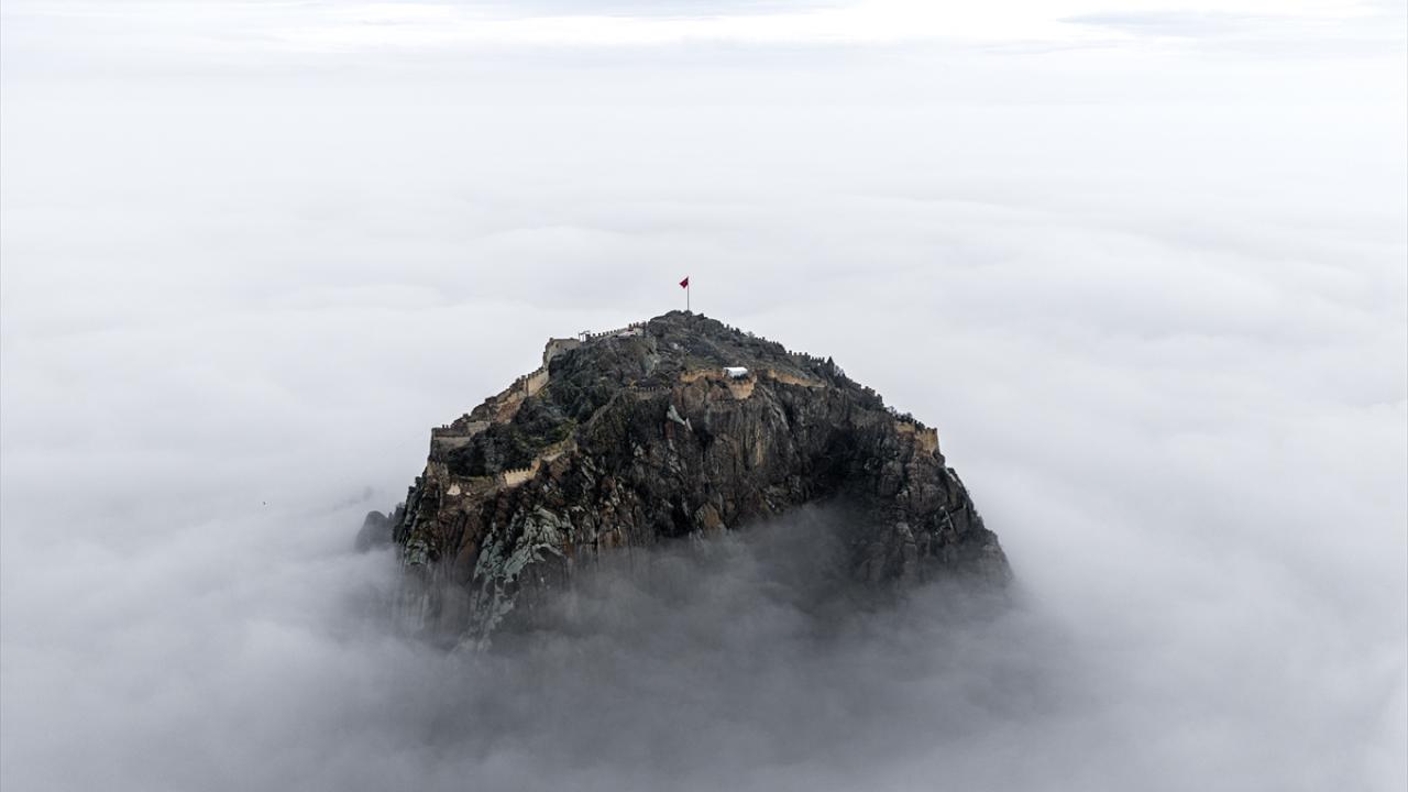 Afyonkarahisar’da kentin simgelerinden biri olan Afyonkarahisar Kalesi, sabahın erken saatlerinde oluşan sis ile görüntülendi.