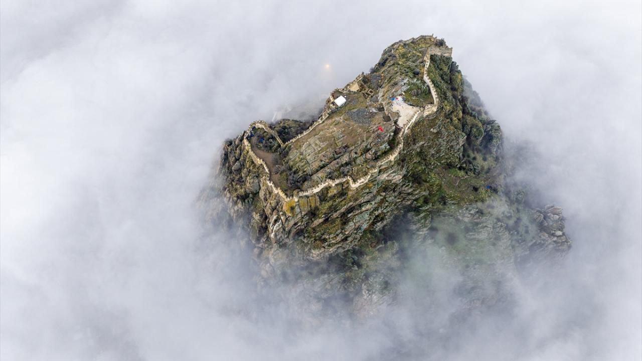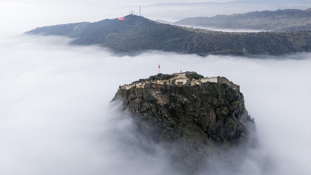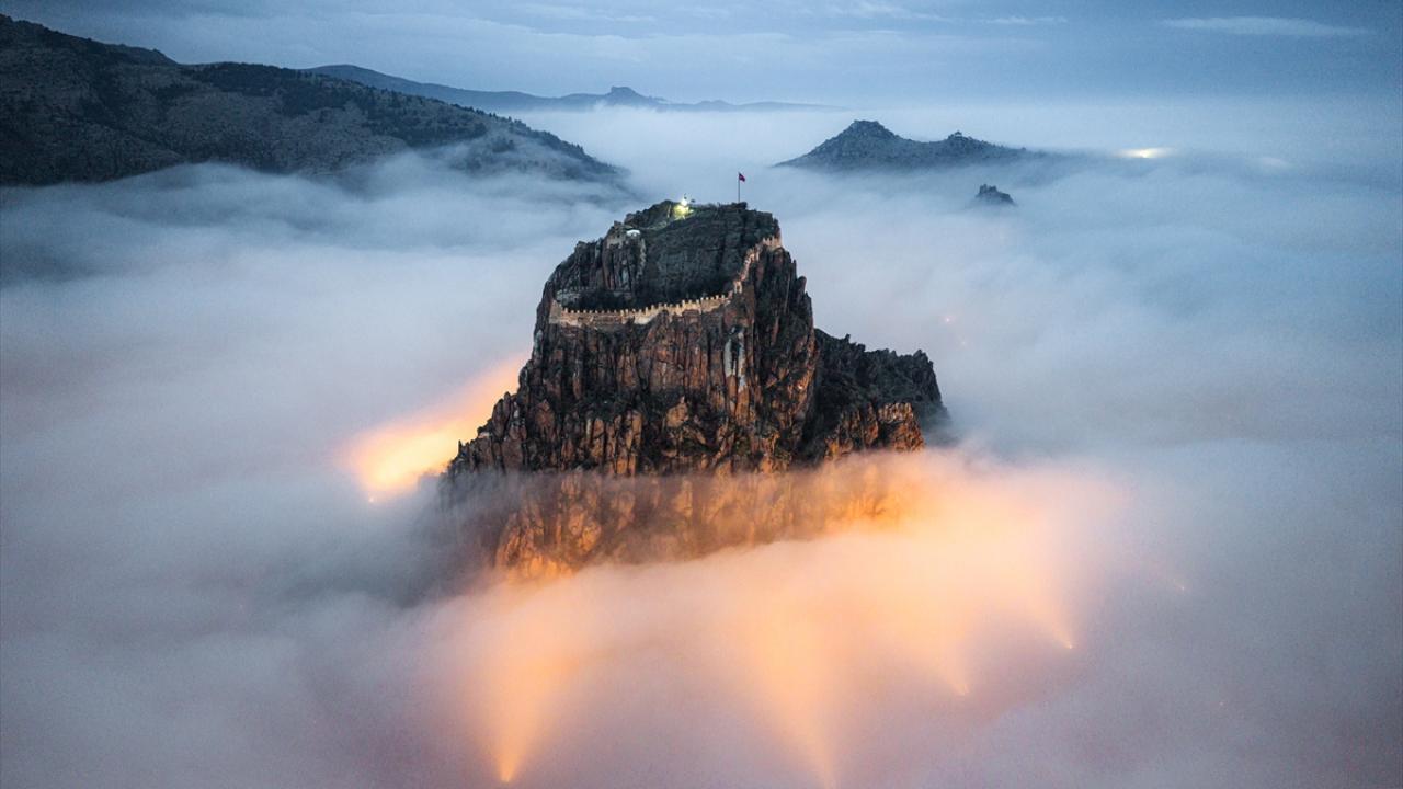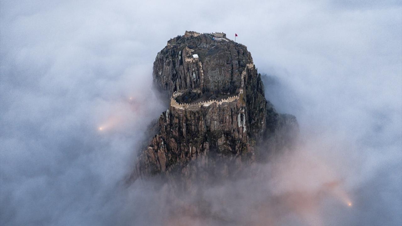 Afyonkarahisar’da kentin simgelerinden biri olan Afyonkarahisar Kalesi, sabahın erken saatlerinde oluşan sis ile görüntülendi.
