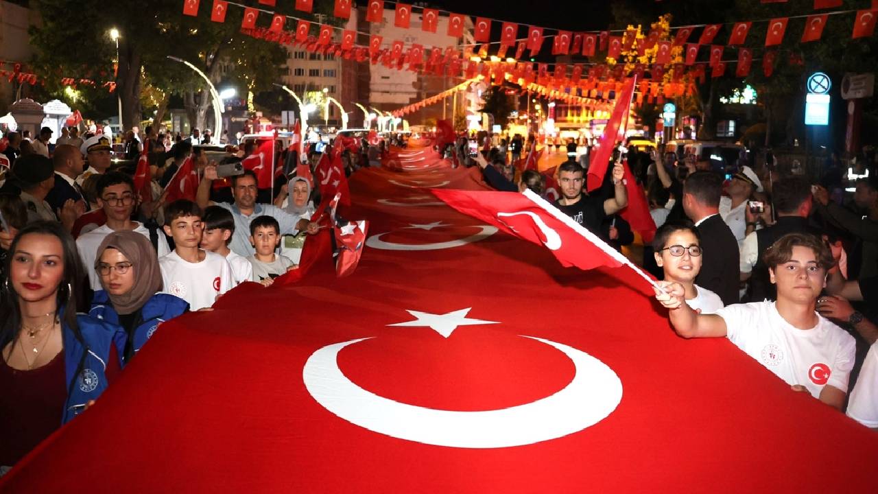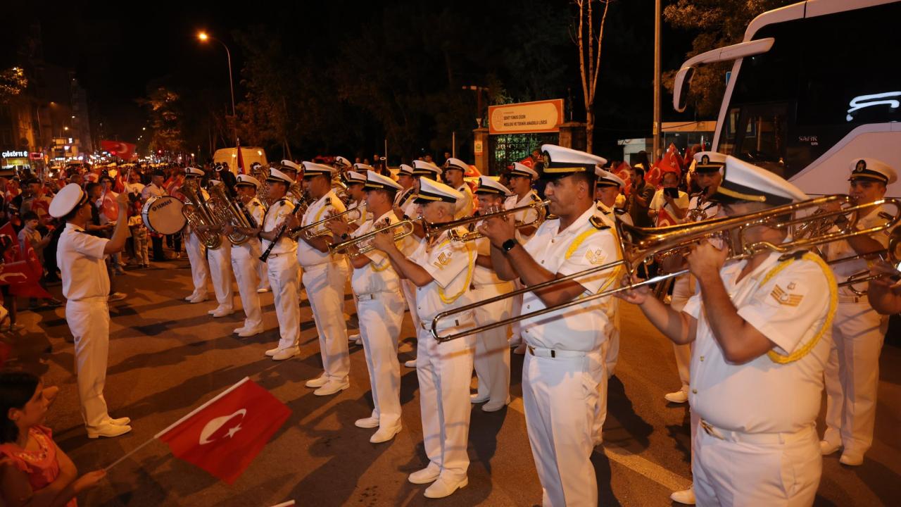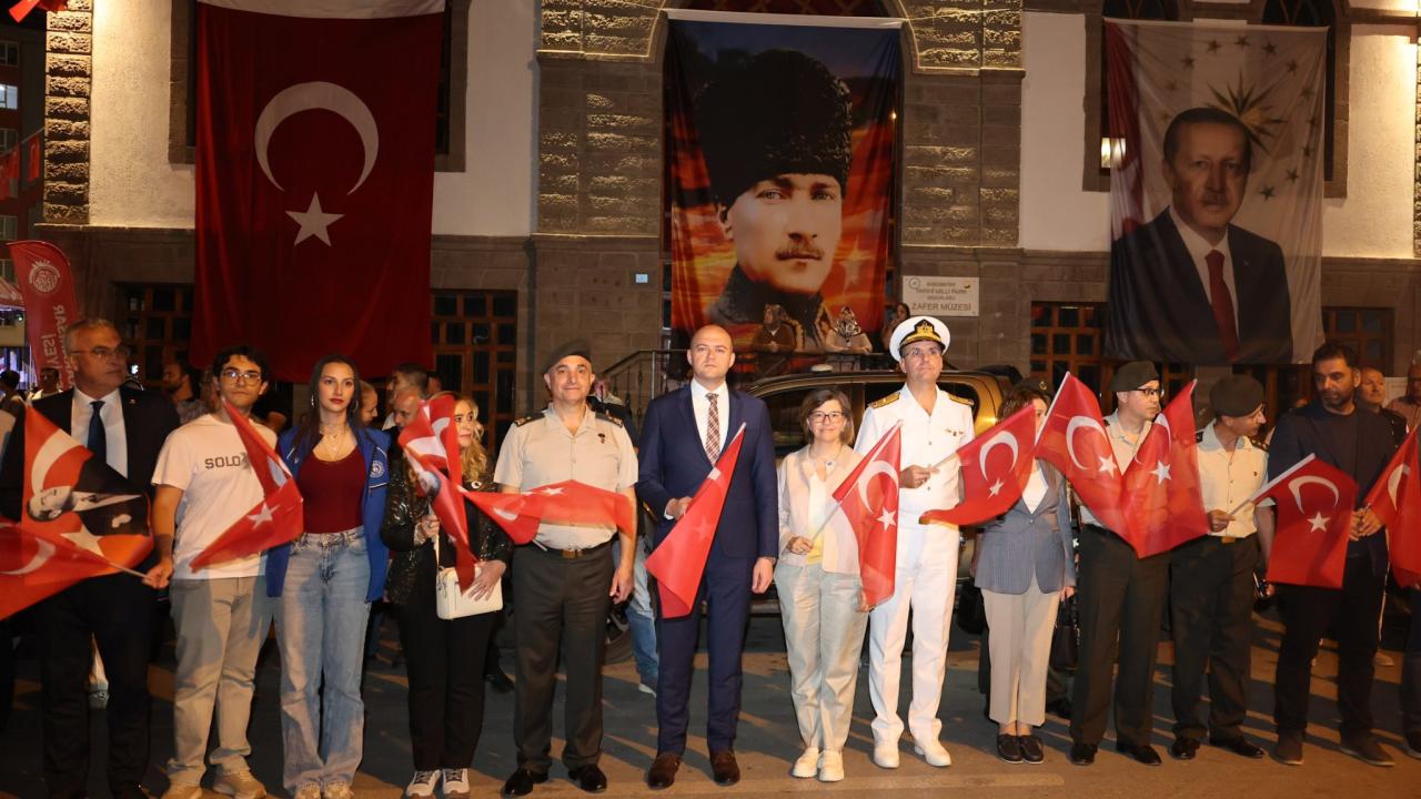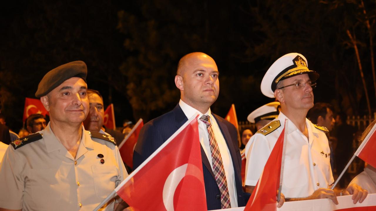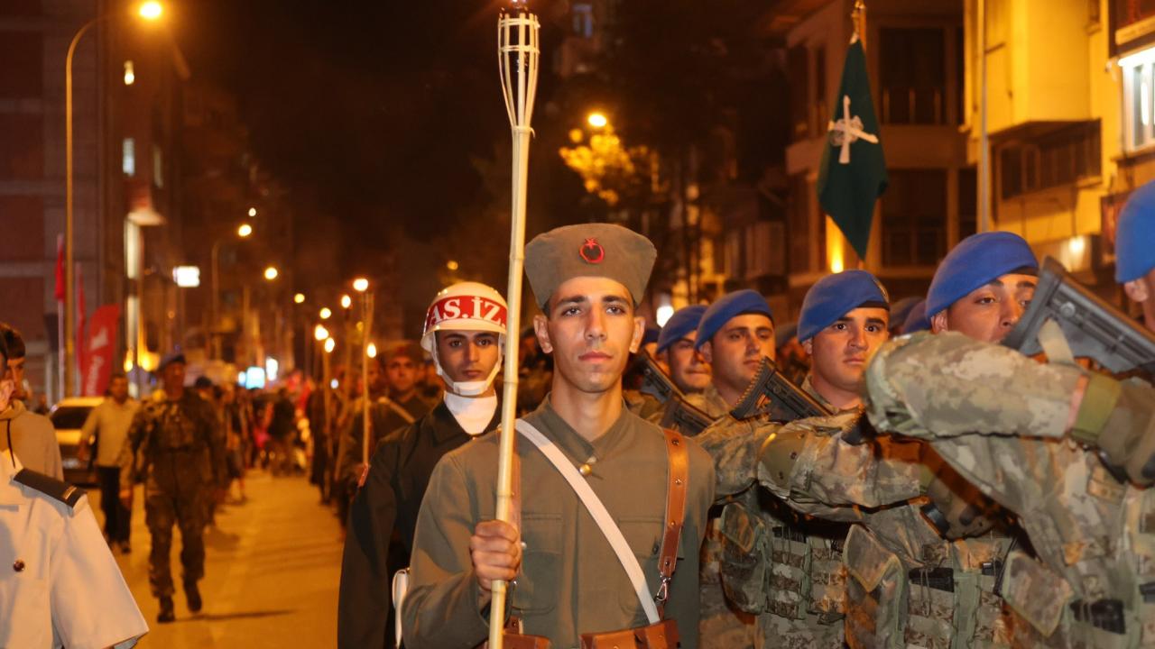 Kurtuluş Caddesi`nden 41`inci Komando Tugay Komutanlığı Birlikleri ve Deniz Kuvvetleri Komutanlığı Bandosu eşliğinde başlayan fener alayında vatandaşlar, ellerinde Türk bayrakları ve meşalelerle, Anıtpark`a kadar yürüdü.