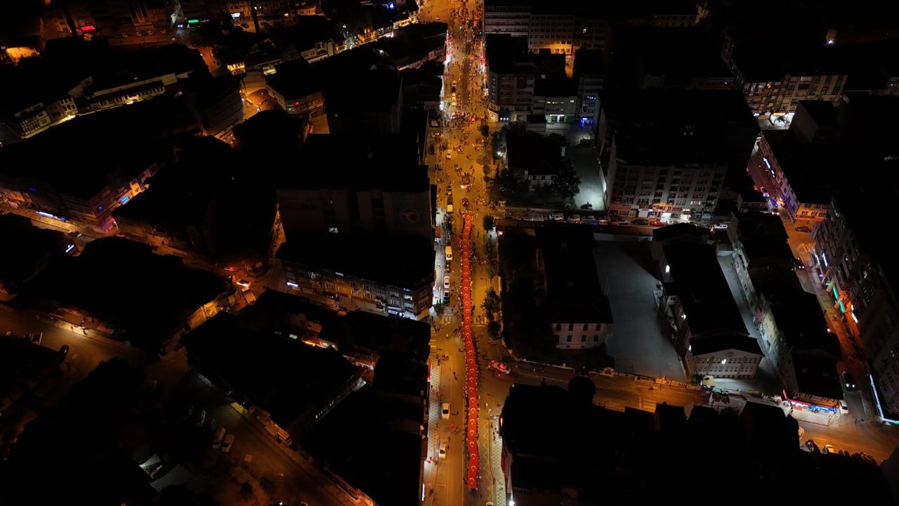 Yürüyüşte, tören takımı eşliğinde 100 metrelik Türk Bayrağı taşındı.