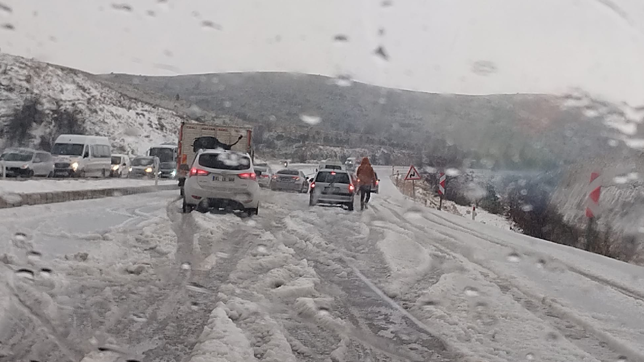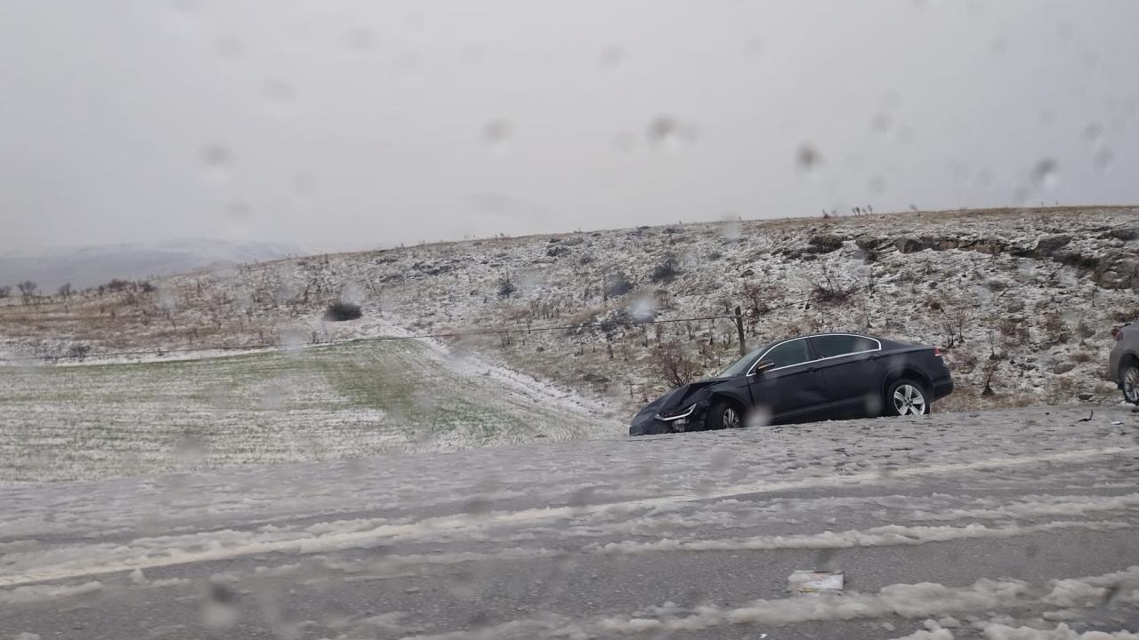Dolu nedeniyle etraf beyaza büründü, sürücüler trafikte ilerlemekte güçlük çekti.