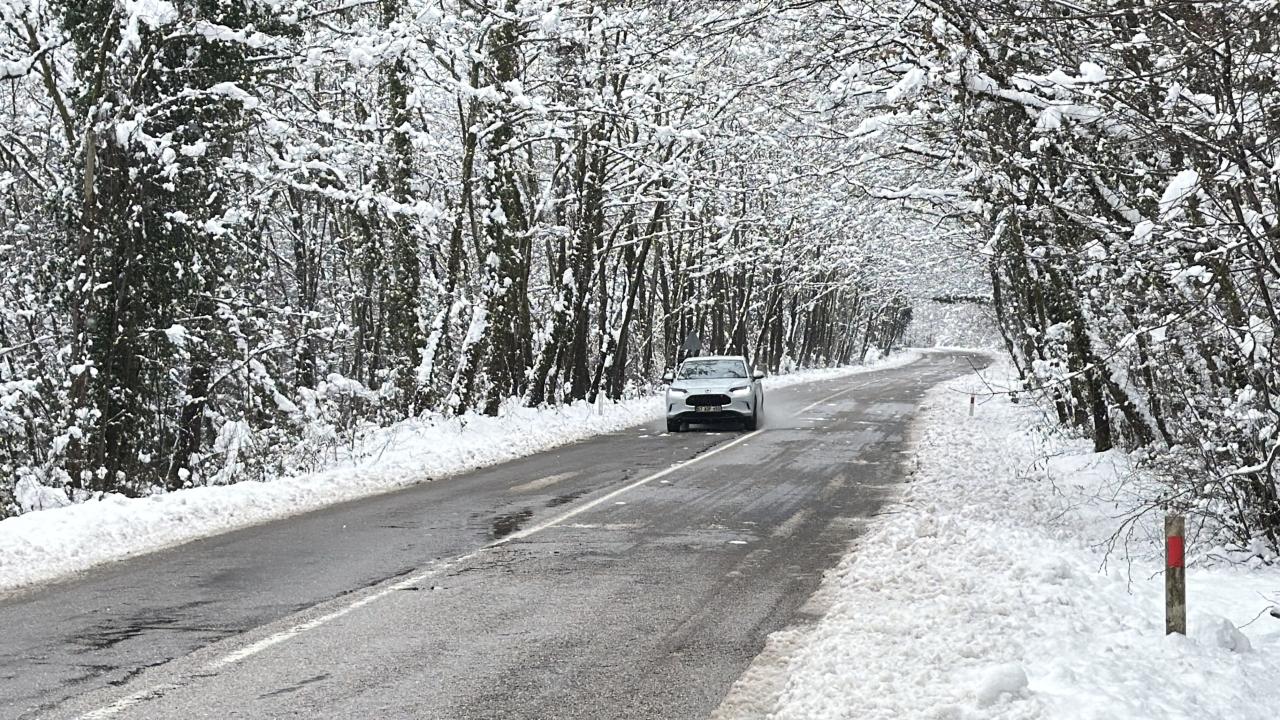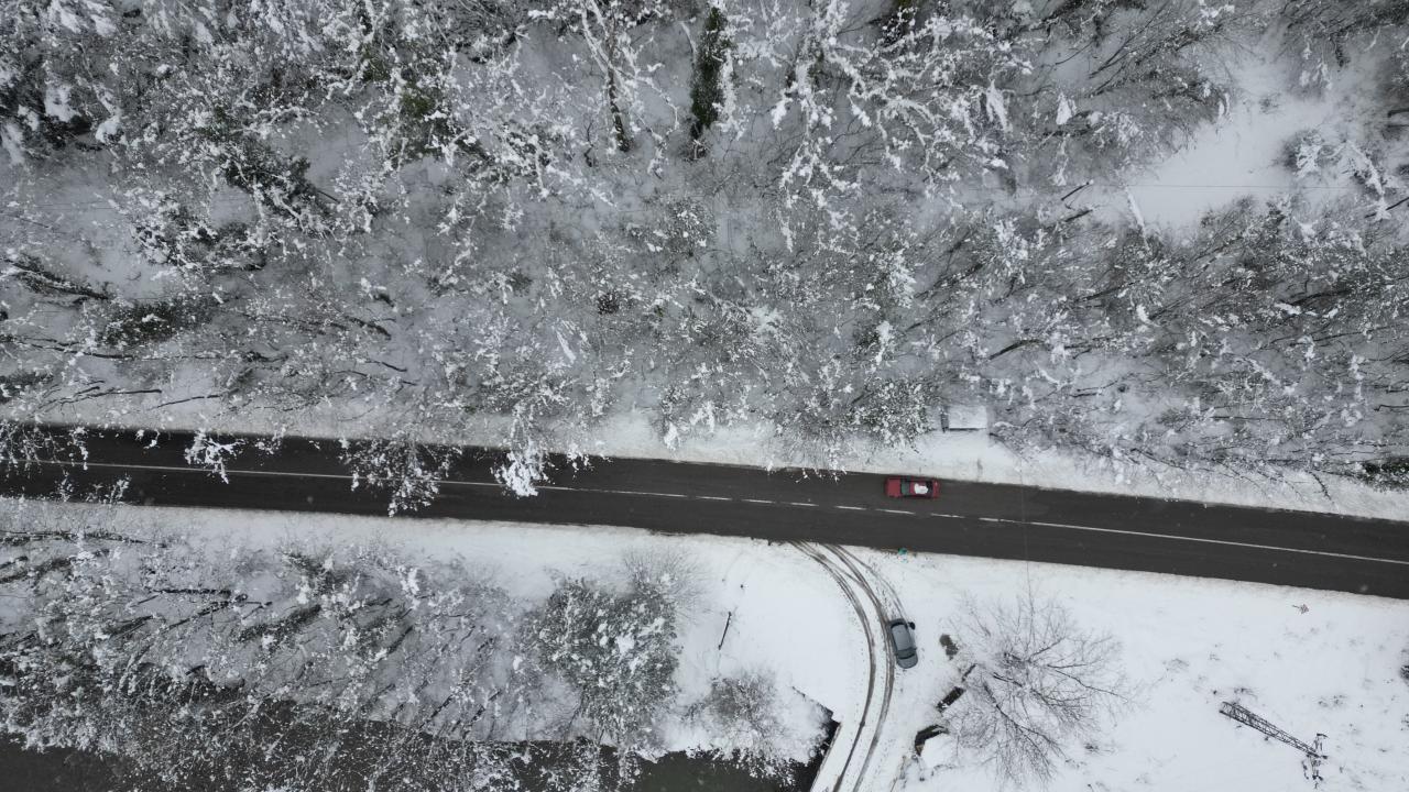 Yolun karla kaplı eşsiz manzarası dron ile görüntülendi.