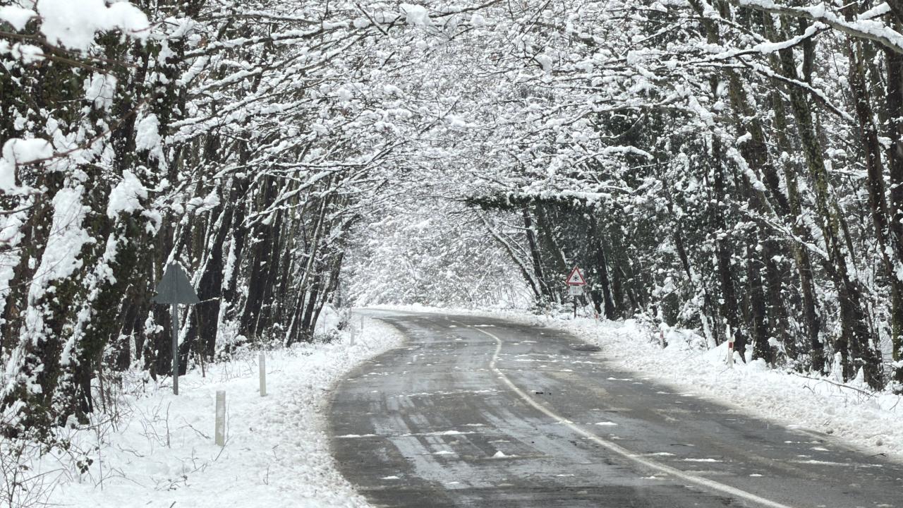 'Ağaç tünel yol'da, kar yağışı sonrası ortaya çıkan manzara görüntülendi