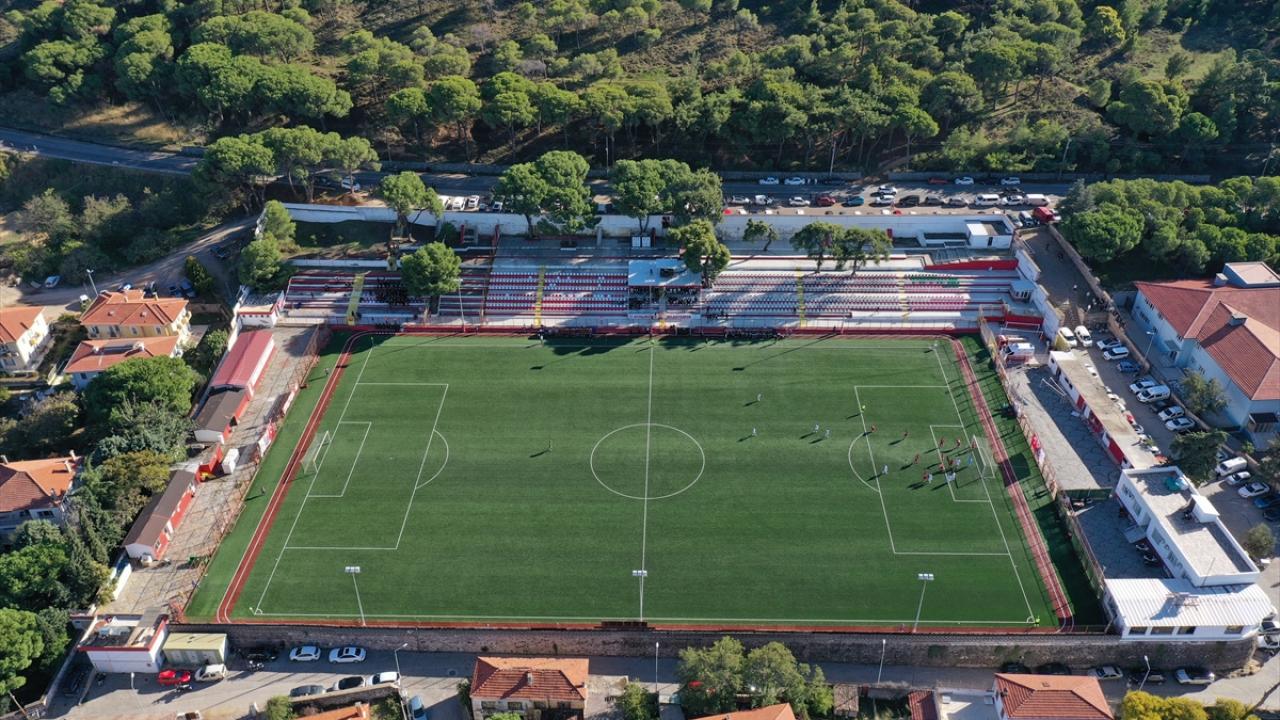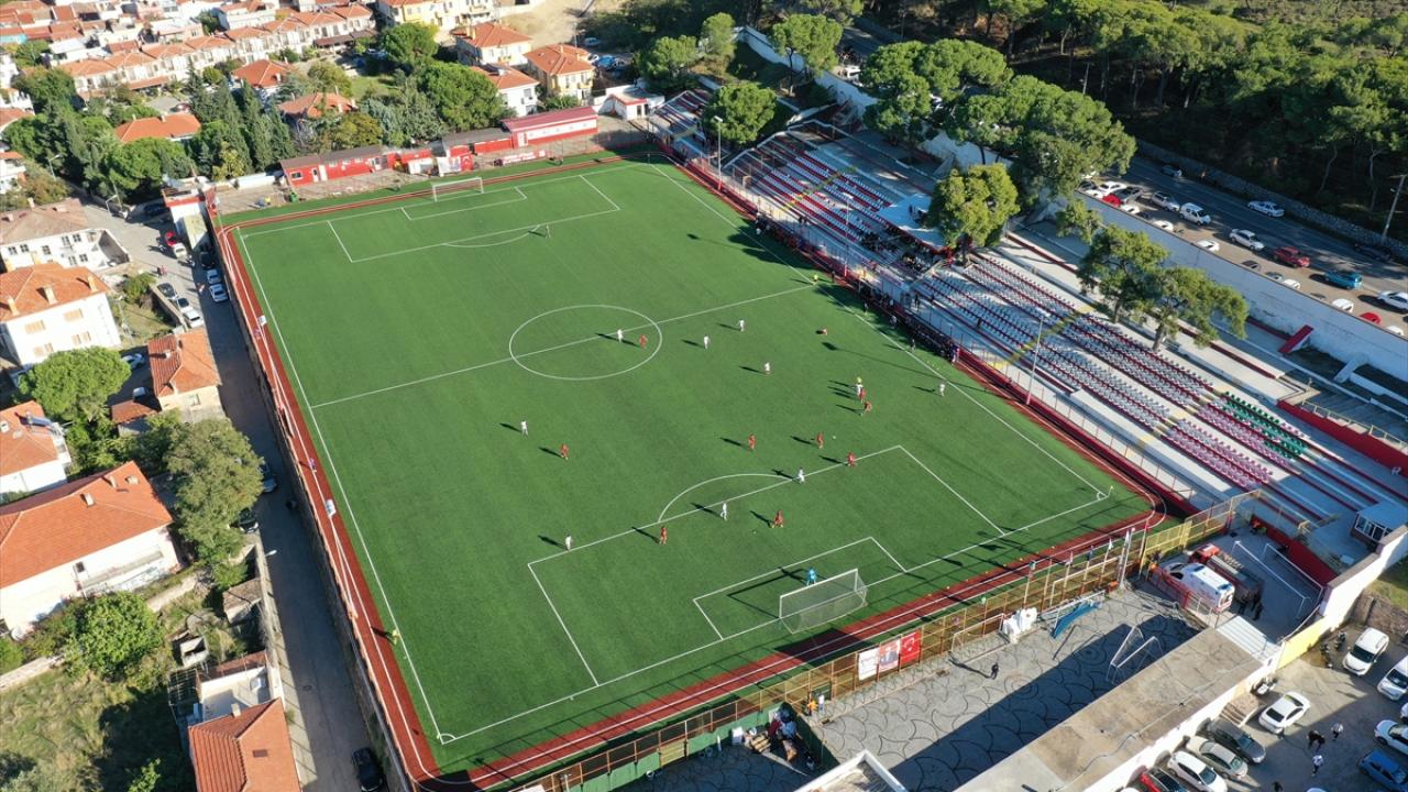 Nesine 3. Lig ekiplerinden Ayvalıkgücü Belediyespor'un maçlarını oynadığı, tribünlerinde ağaçlar bulunan Hüsnü Uğural Stadı'nın deniz manzarası, taraftara eşsiz bir futbol keyfi yaşatıyor.