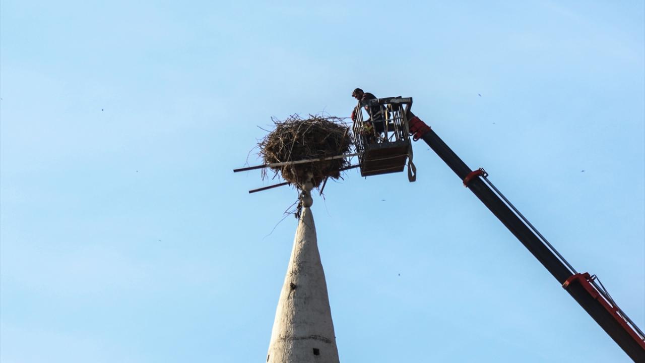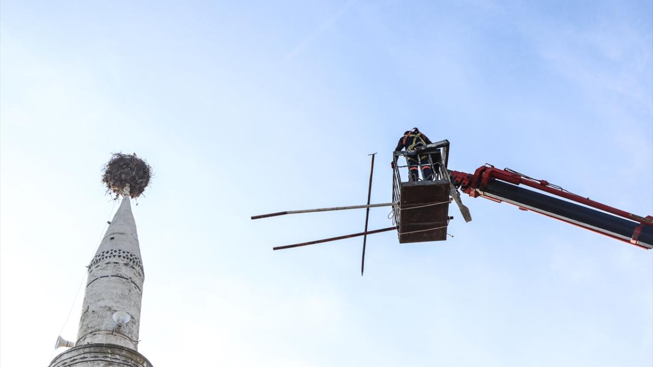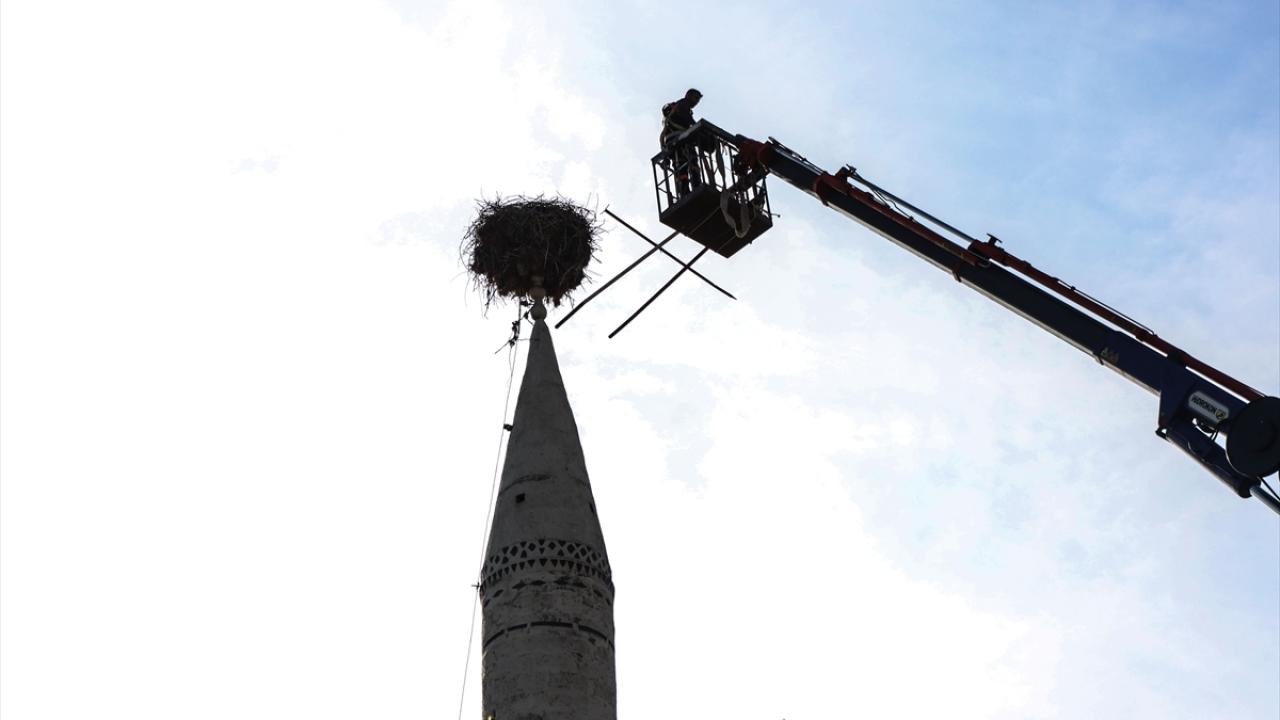 Köylülerin "leylekli cami" olarak da adlandırdığı ibadethanedeki yuvanın zarar görmeden başka noktaya taşınması talebini dikkate alan Çevre, Şehircilik ve İklim Değişikliği İl Müdürlüğü, Doğa Koruma ve Milli Parklar ve AFAD ekipleri burada çalışma başlattı.