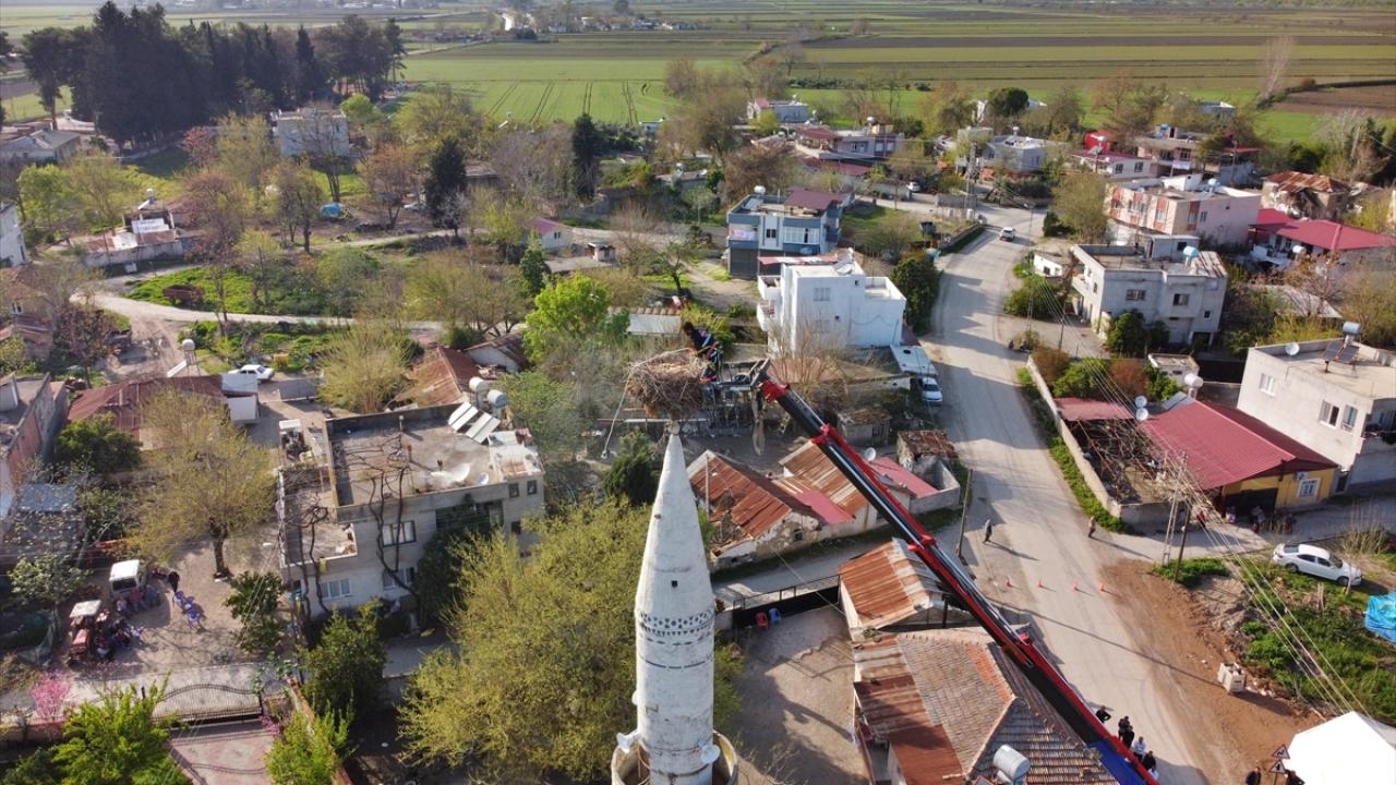 Depremlerde minarenin alem kısmındaki leylek yuvasının zarar görmediğini dile getiren Koç, bu yuvanın taşınması için gerekli yerlere başvuruda bulunduğunu söyledi.