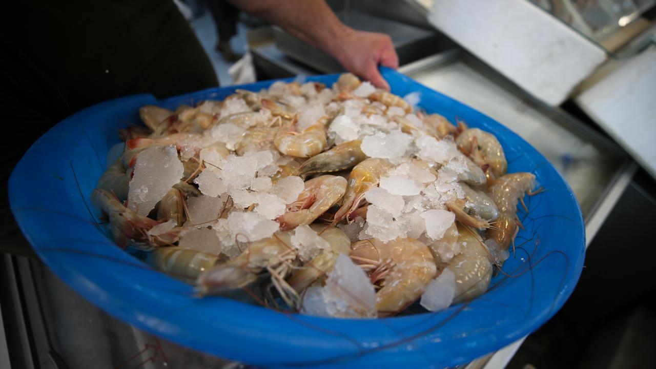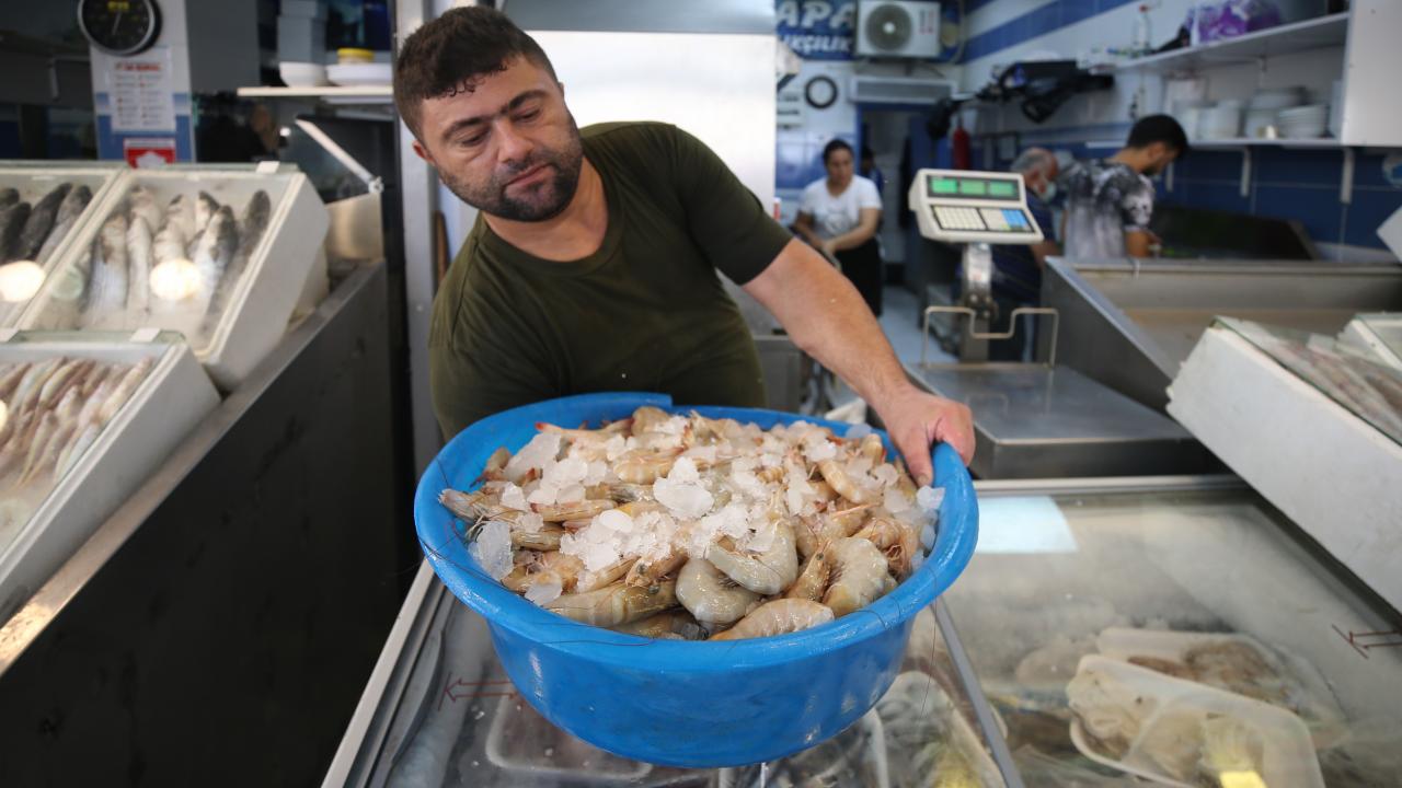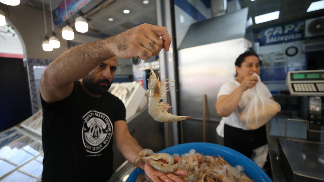 İskenderun Körfezi'nde bulunan, lezzeti ve yüksek besin değeriyle su ürünleri arasında önemli ekonomik değere sahip jumbo karides, av sezonunun açılmasıyla tezgahlardaki yerini almaya başladı.