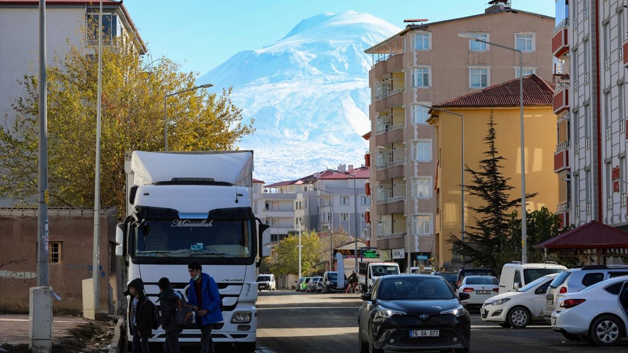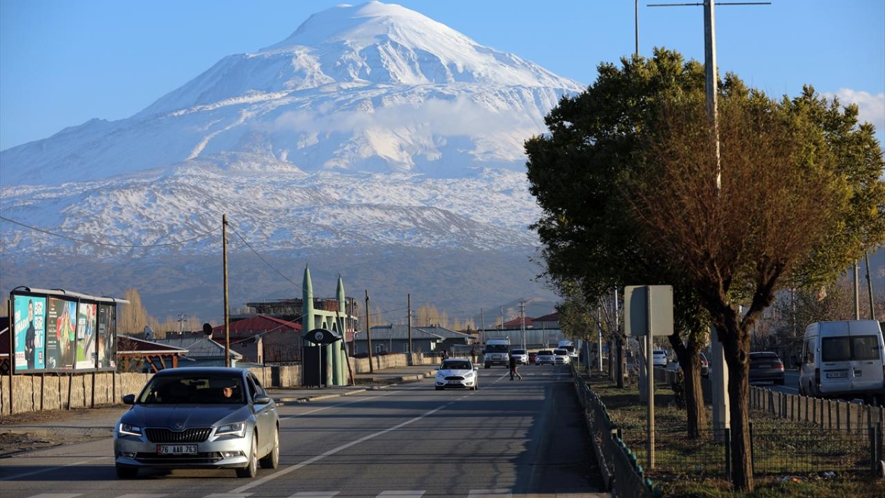 Genellikle zirvesinden kar eksik olmayan Ağrı Dağı`nın yanı sıra Iğdır`daki Aras Dağları da beyaza büründü.
