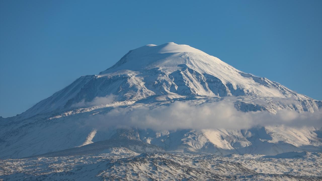 Türkiye'nin en yüksek dağı olan Ağrı Dağı, kar yağışıyla eteklerine kadar beyaza büründü.