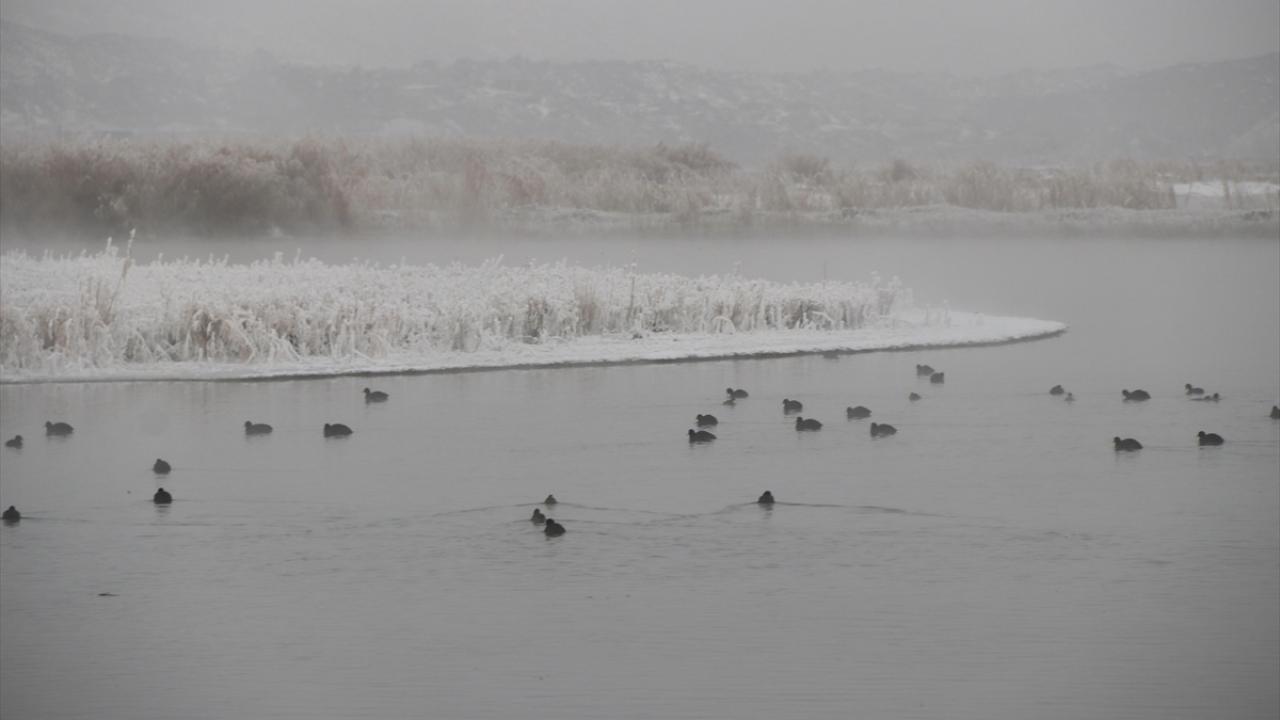 Türkiye'nin en büyük milli parklarından olan Ağrı Dağı Milli Parkı'nda soğuk havanın etkisiyle oluşan buzlanma ve kırağı, seyrine doyumsuz güzellikler oluşturdu.