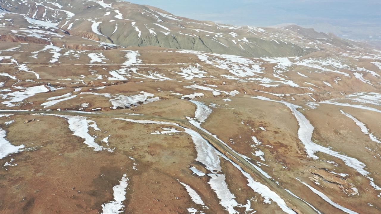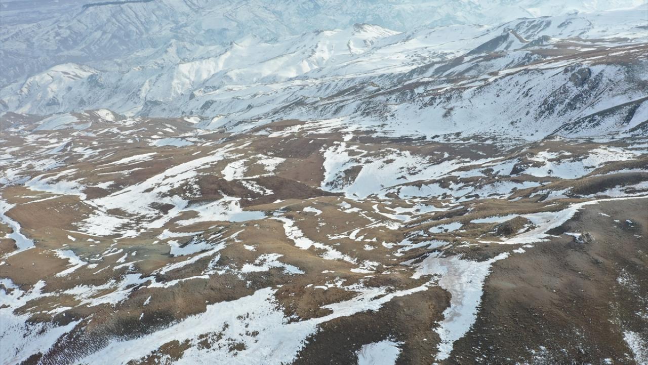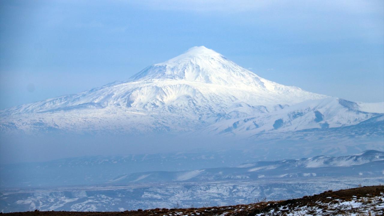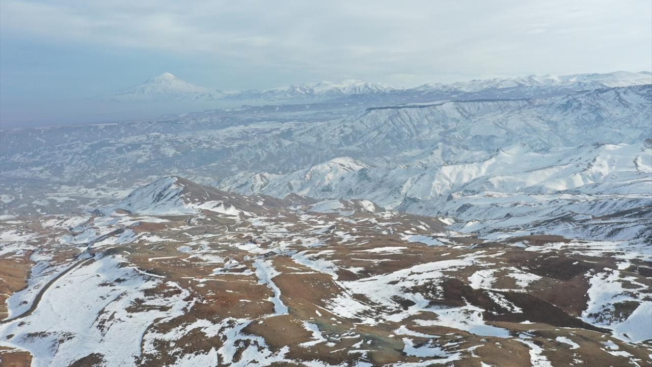Türkiye`nin İran, Nahçıvan ve Ermenistan sınırında bulunan Ağrı Dağı ile Aras Dağları`nın üstünü örten kar, bölgede havaların ısınmasıyla erimeye başladı.