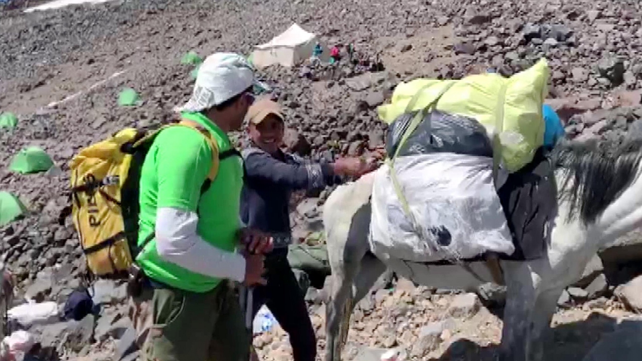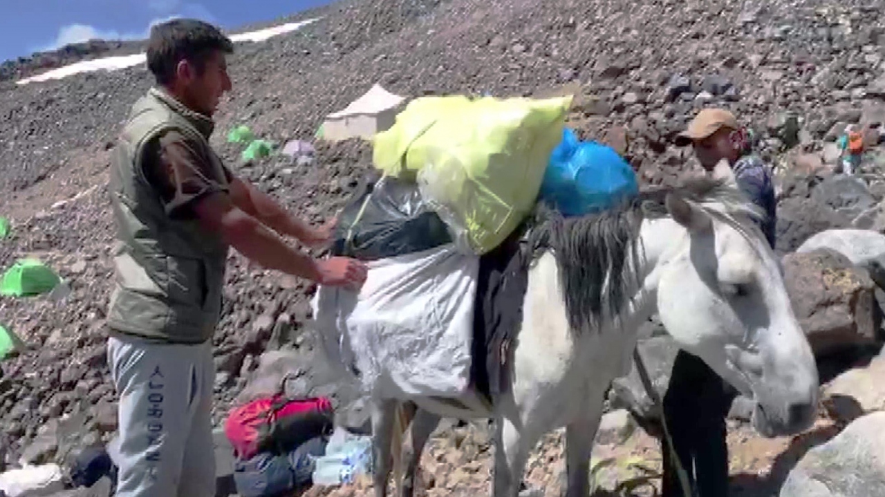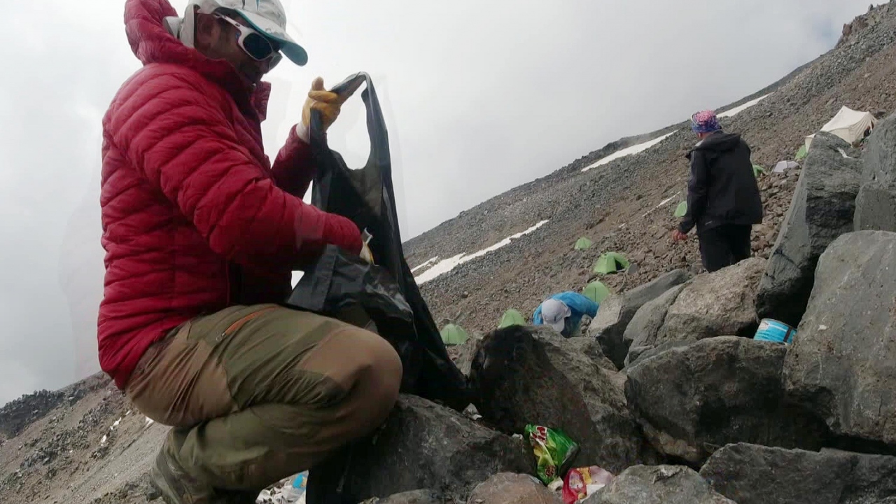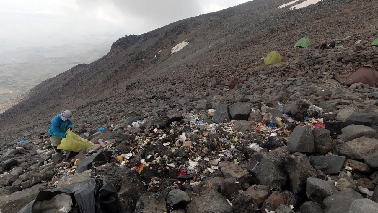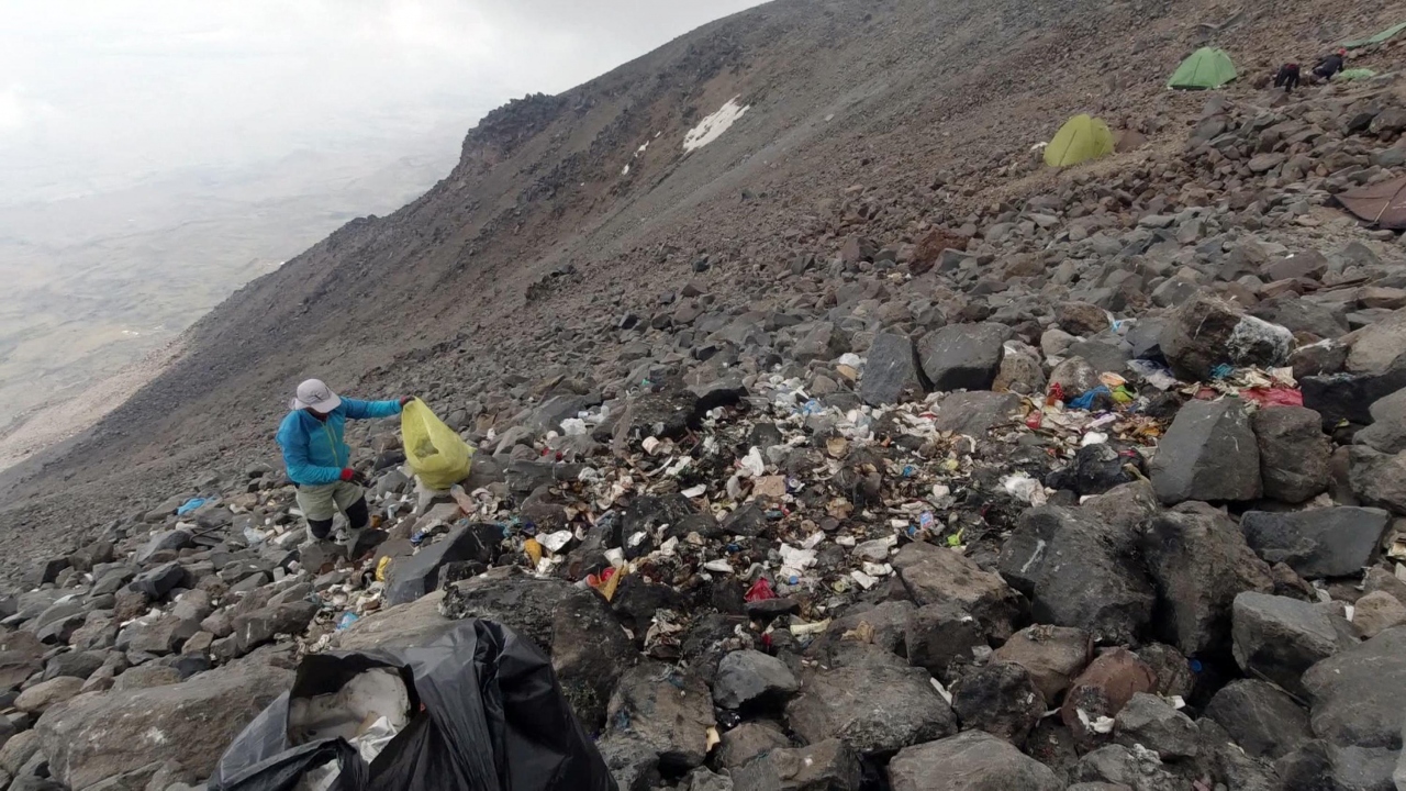 Her yıl binlerce dağcının tırmandığı ve Türkiye'nin çatısı olarak nitelendirilen Ağrı Dağı'nın dorukları bırakılan sigara paketi, poşet, yemek artıkları, pet şişeler ve konserve kutuları nedeniyle çöplüğe döndü.