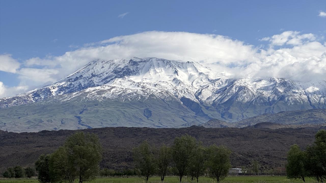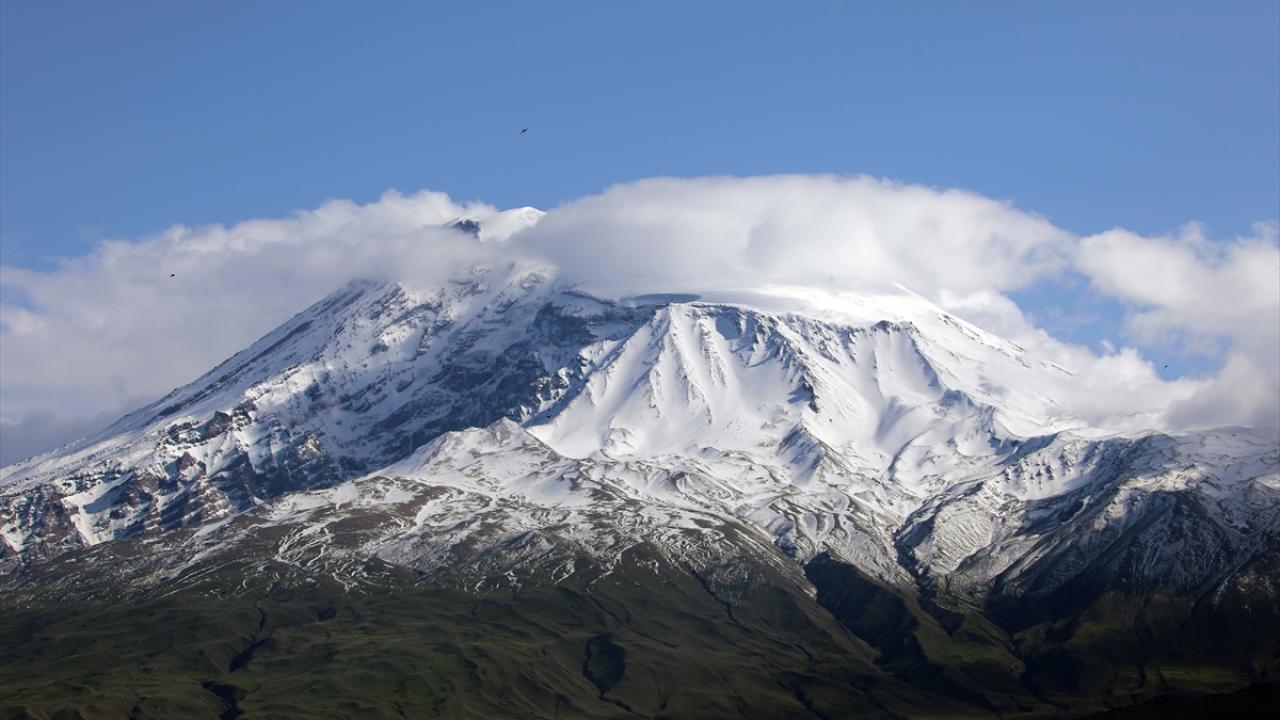 5 bin 137 metreyle Türkiye`nin en yüksek noktası olan Ağrı Dağı, kar yağışıyla beyaza büründü.