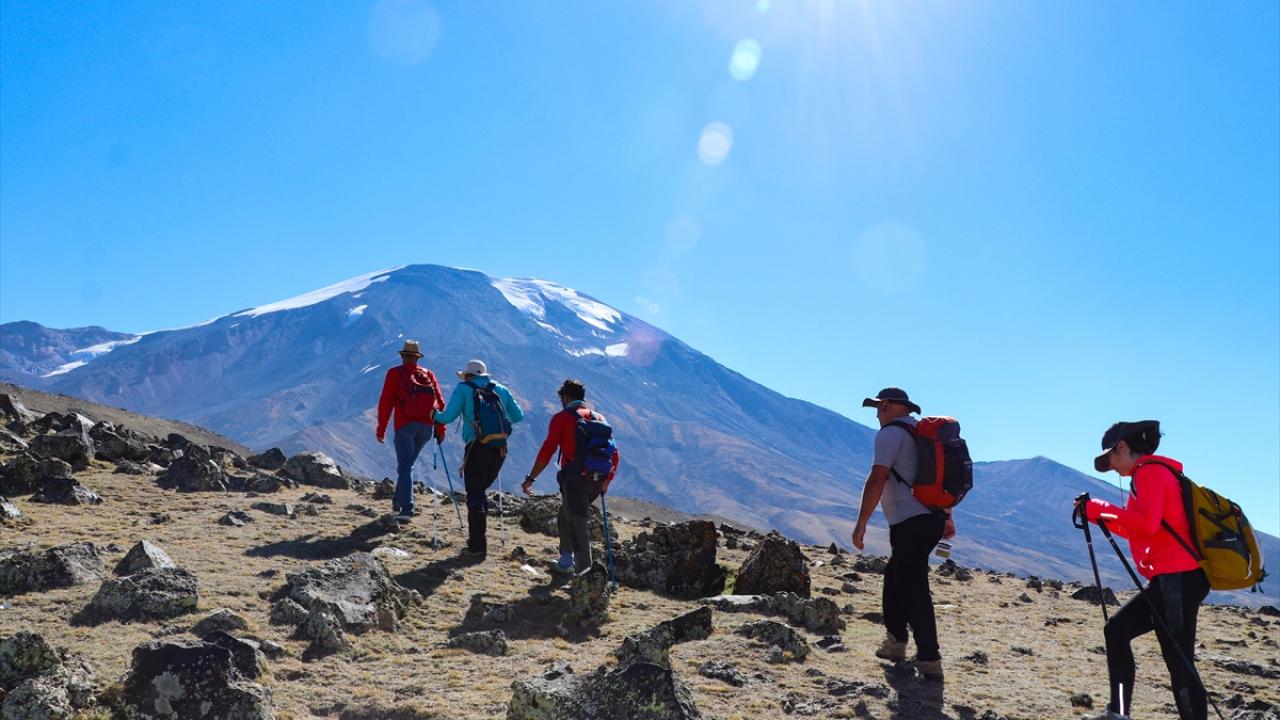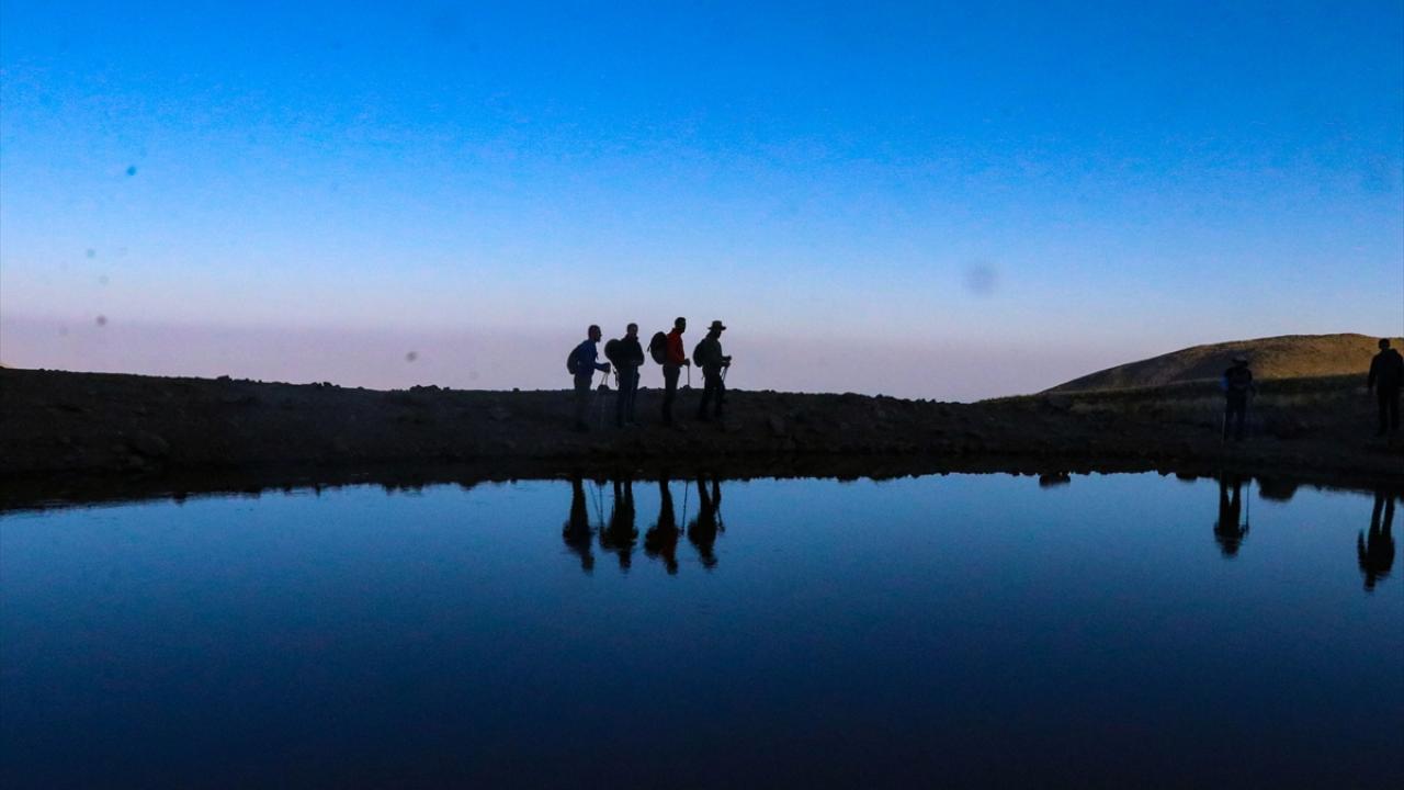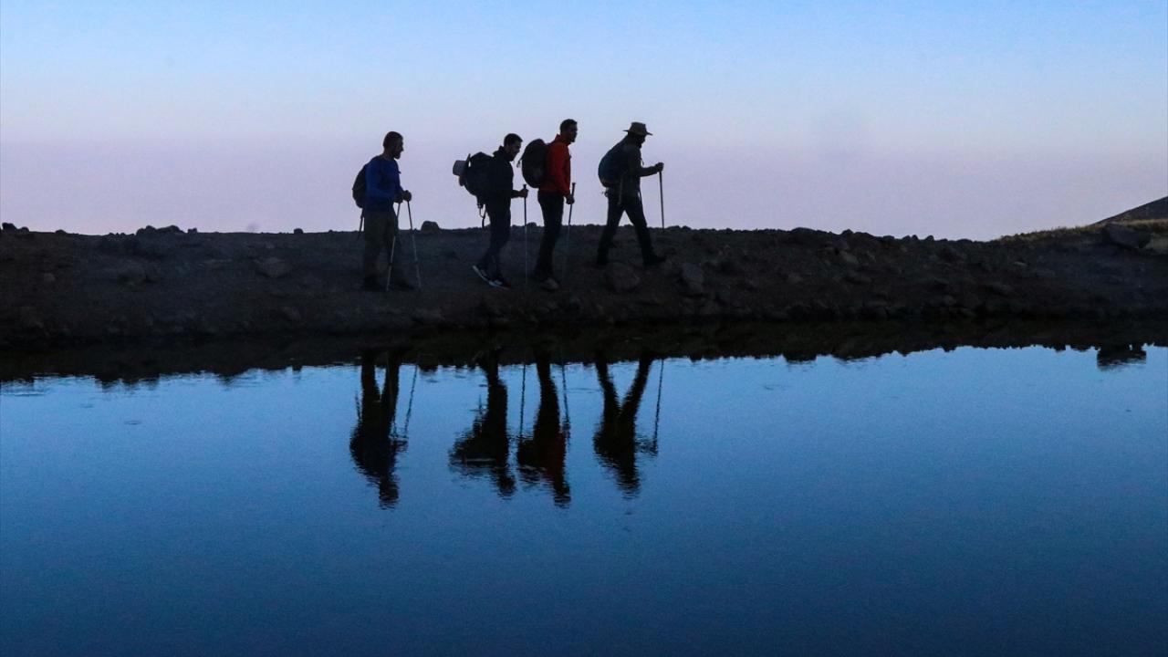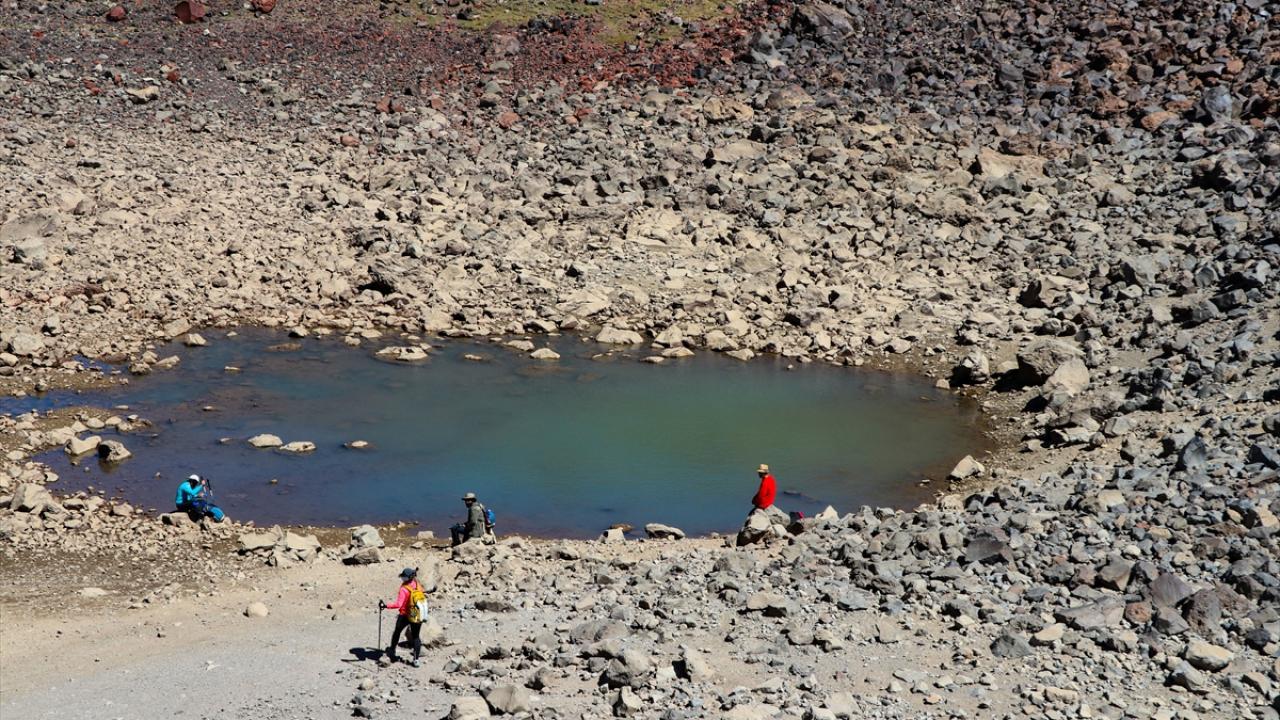 Dağcılar ve doğaseverler, Küp Gölü`nü görmek ve dağın kuzeybatı rotasını gezmek için Ağrı Dağı`na günübirlik tırmanışlar yapıyor.