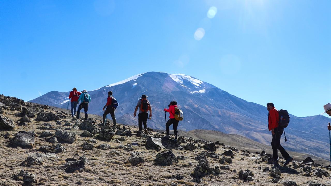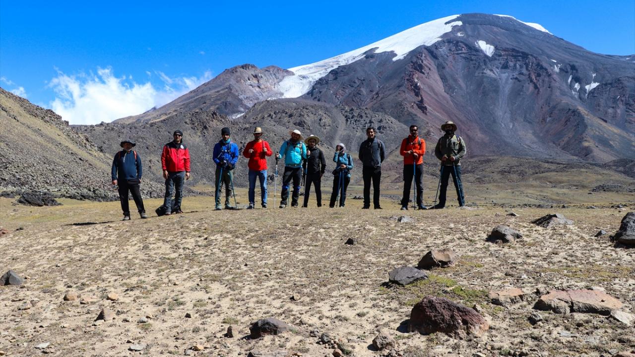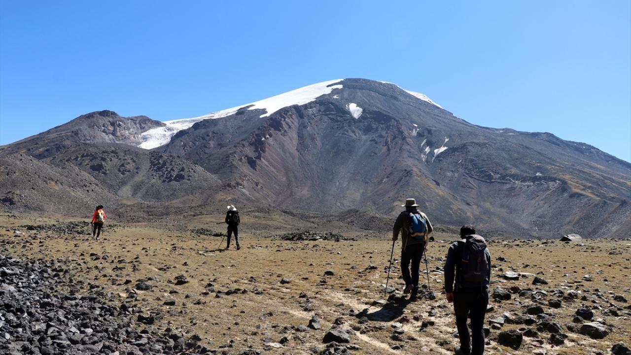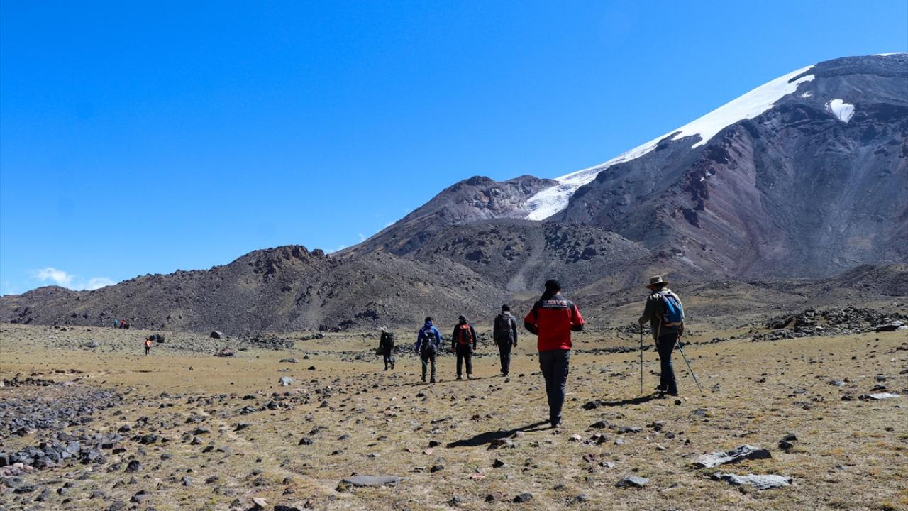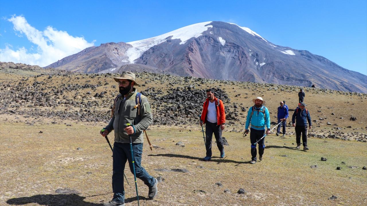 Dağcılar ve doğaseverler, Küp Gölü`nü görmek ve dağın kuzeybatı rotasını gezmek için Ağrı Dağı`na günübirlik tırmanışlar yapıyor.