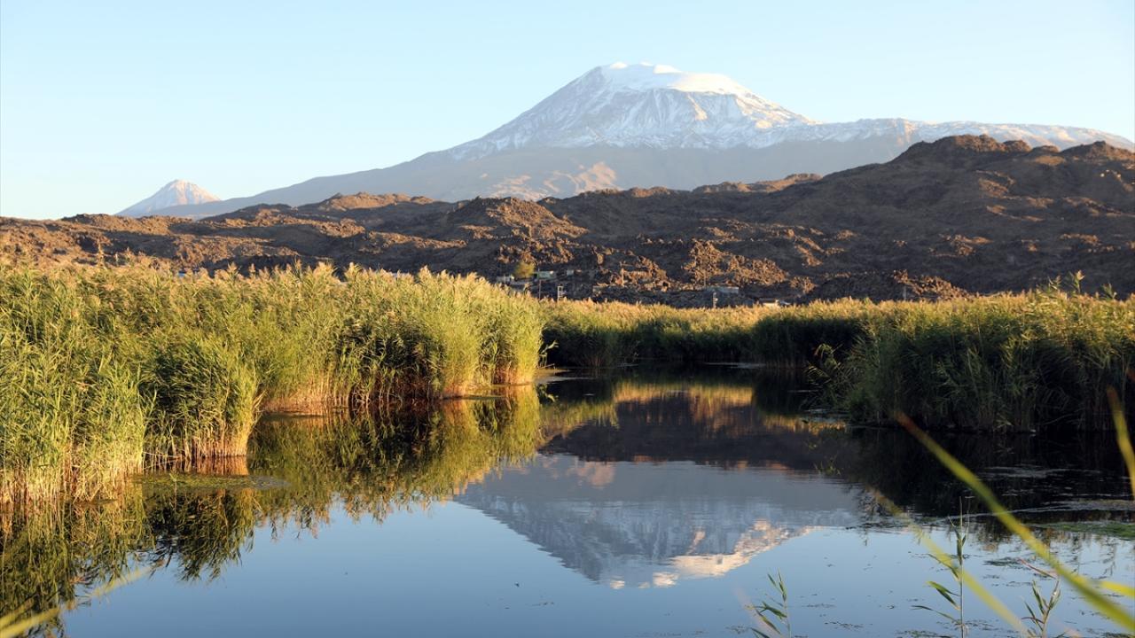 Ağrı Dağı`nın doğusunda bulunan 3 bin 925 rakımlı Küçük Ağrı Dağı ile karşısında yer alan Ermenistan`daki 4 bin 90 metre rakımlı Alagöz Dağı`nın zirveleri de kar yağışı ile beyaza büründü.