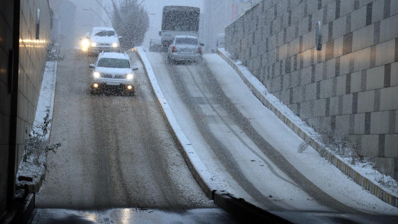 Ağrı'da aralıklarla etkili olan yağış akşamüzeri yerini kara bıraktı. Kenti komşu illere bağlayan kara yollarında kar yağışı nedeniyle sürücüler ilerlemekte güçlük çekti.