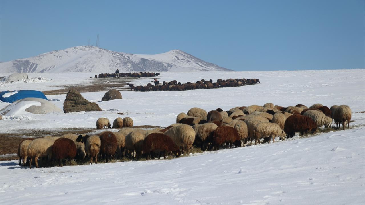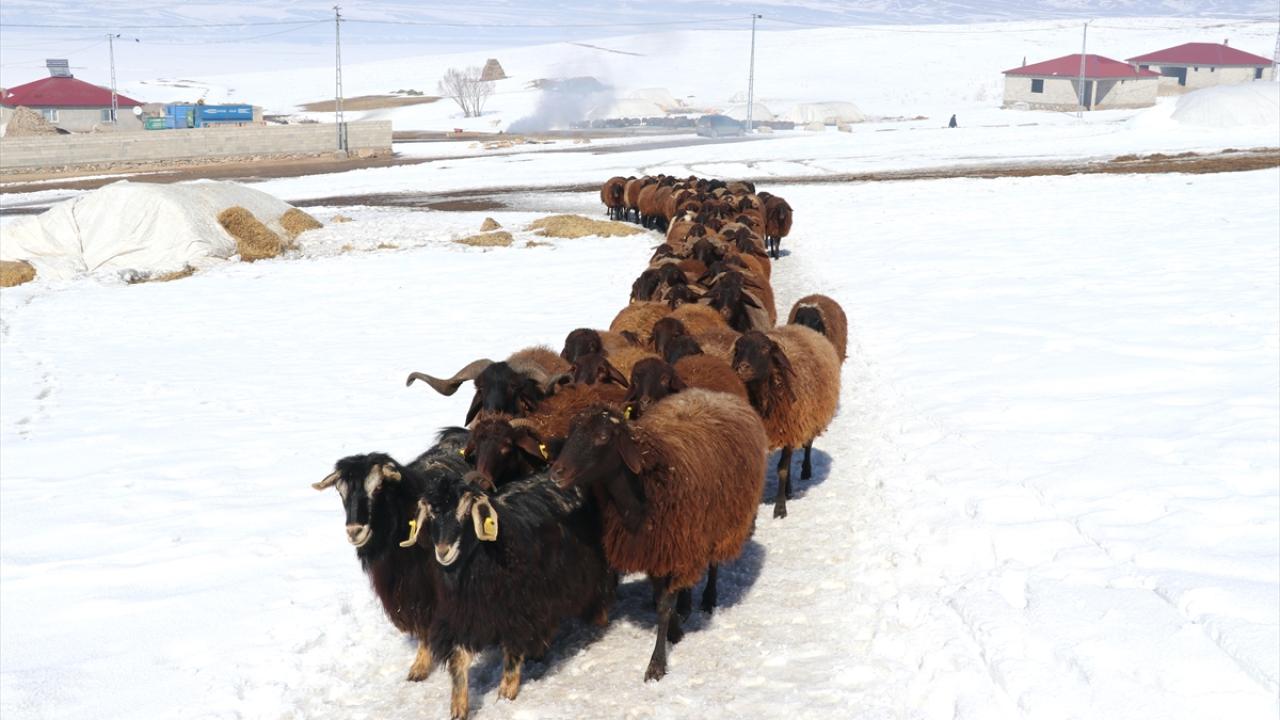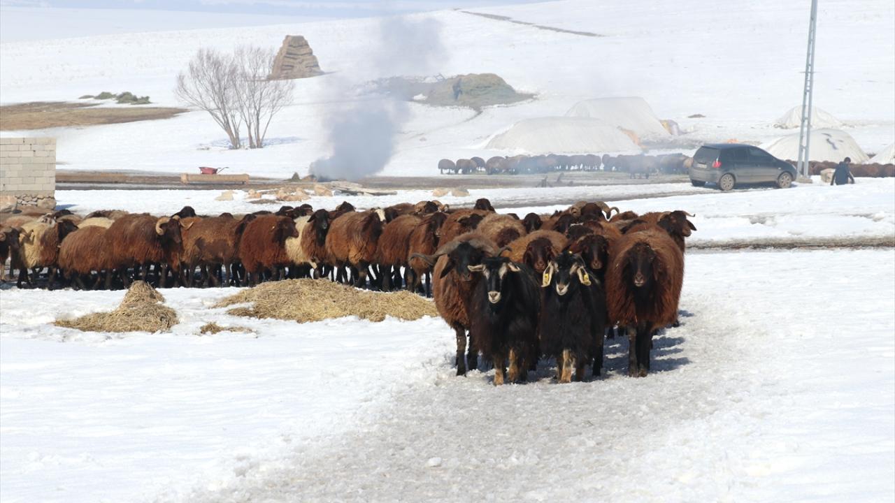 Dışarıda kar üzerinde hayvanları beslediklerini belirten Kaya, "Yaz aylarında hayvanlarımızı yaylaya götürüyoruz. Kışın da karın üzerine ot serip besliyoruz. Zorlu iklim şartlarında bu çalışmaları yapıyoruz. Kuzular da doğmuş, onlara ahırda arpa ve yem veriyoruz. Yazın yaylada kışın da kar altında zorlu mesaimiz sürüyor. " diye konuştu.