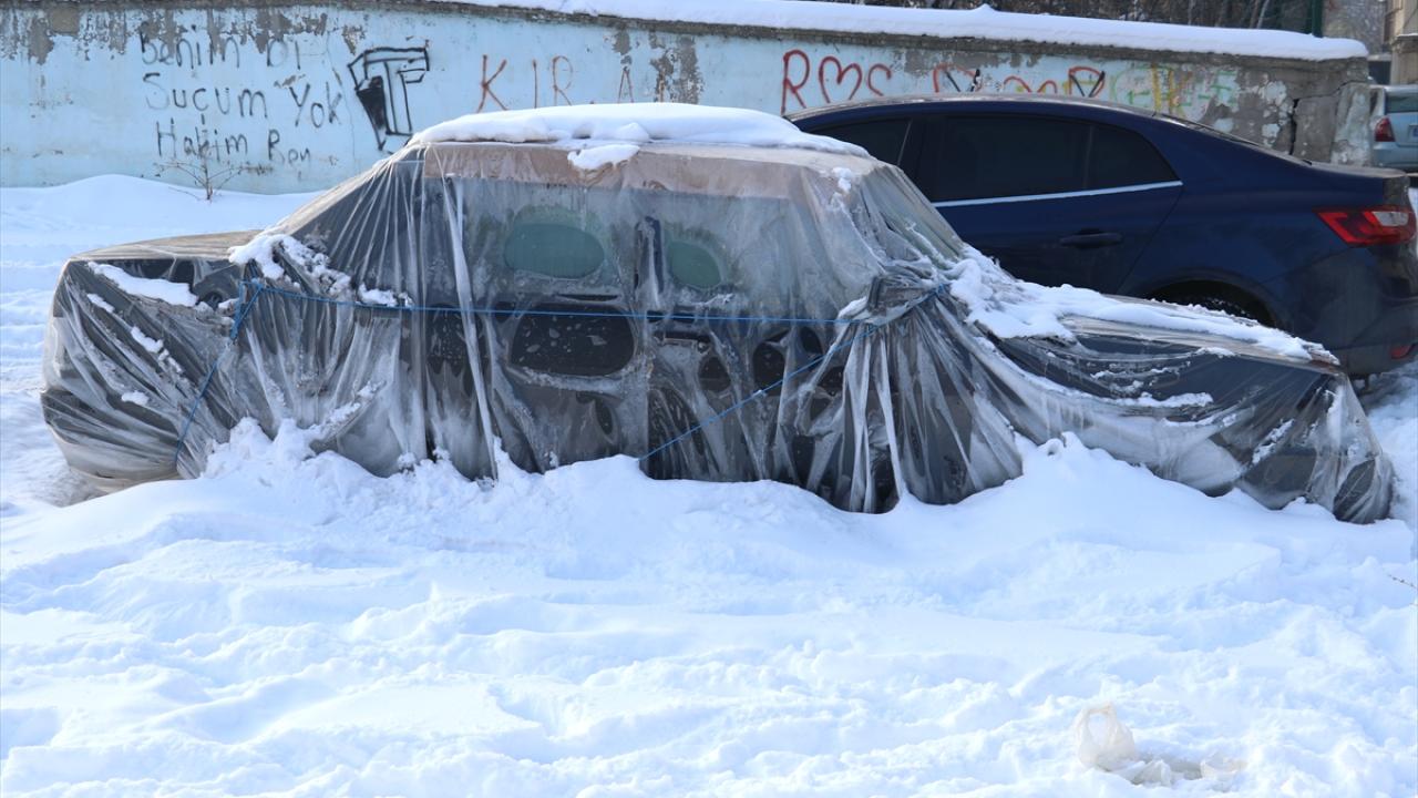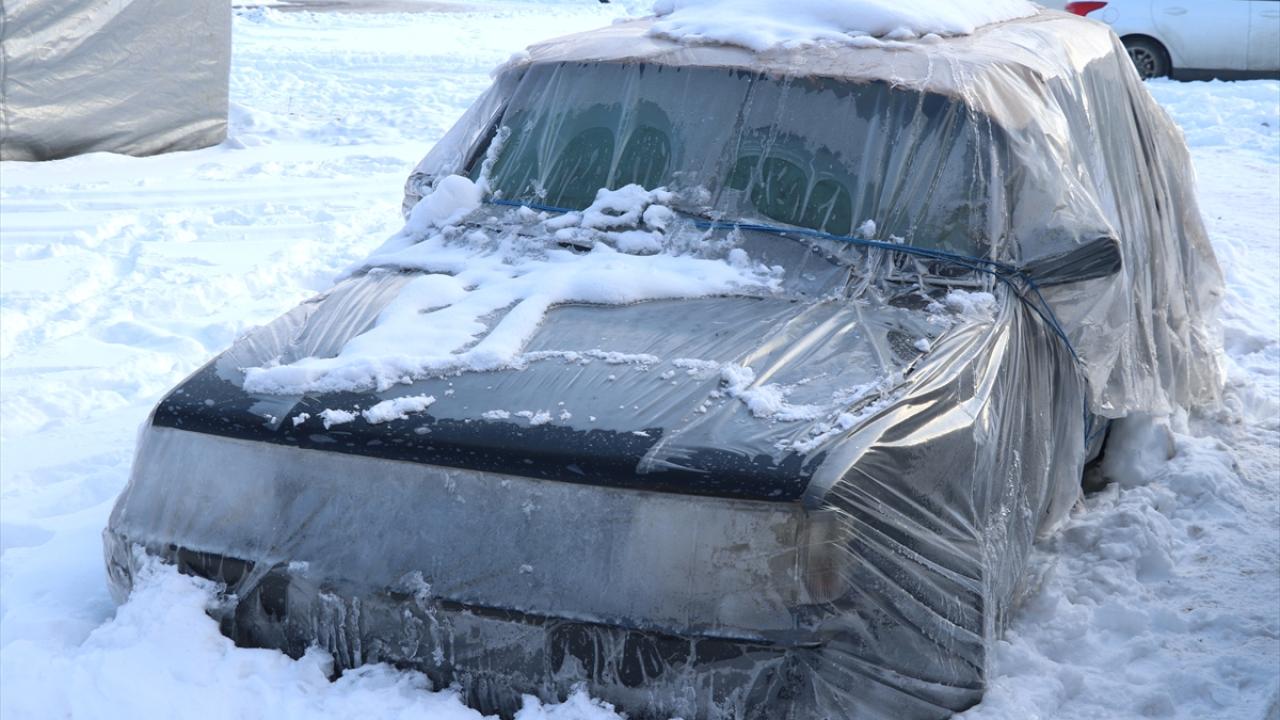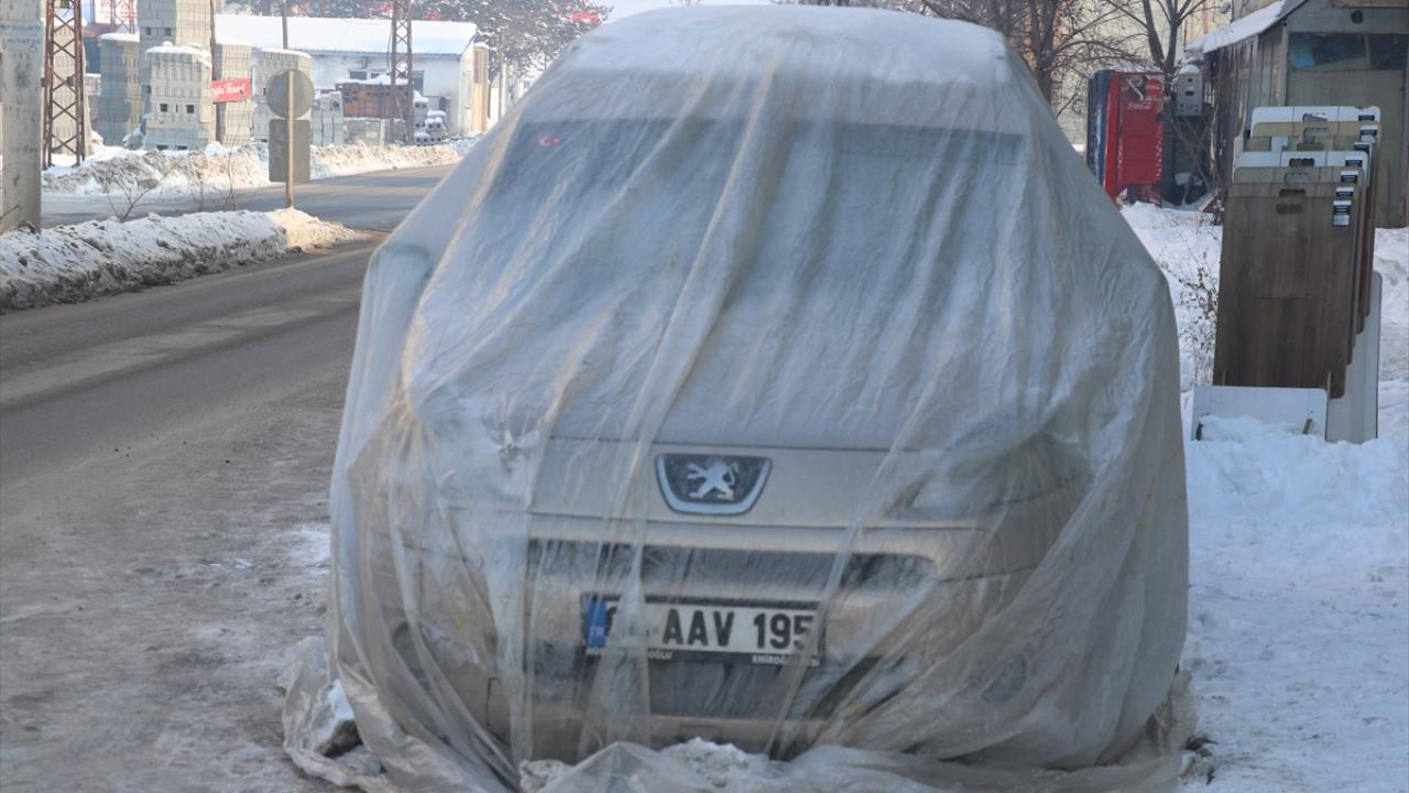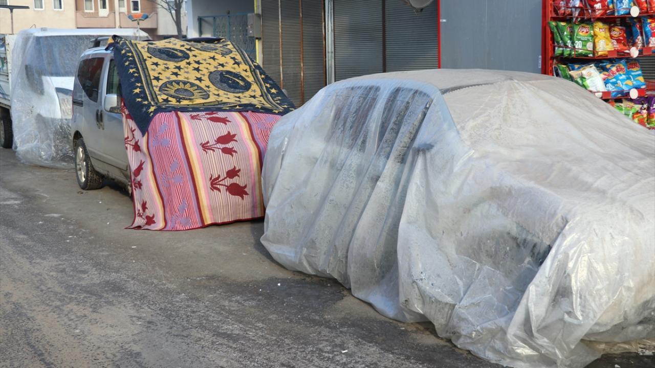 İş yeri ve araç camlarının buz tuttuğu kentte, vatandaşlar araçlarının üstünü örterek korumaya çalıştı.