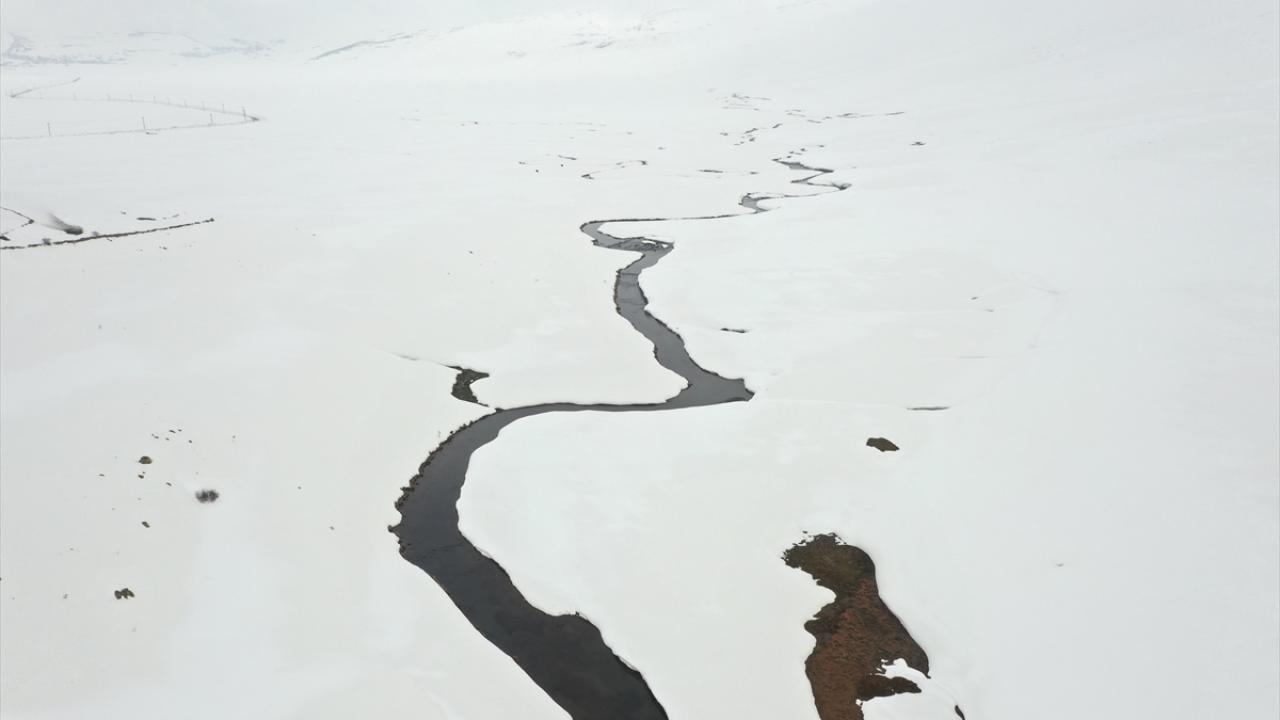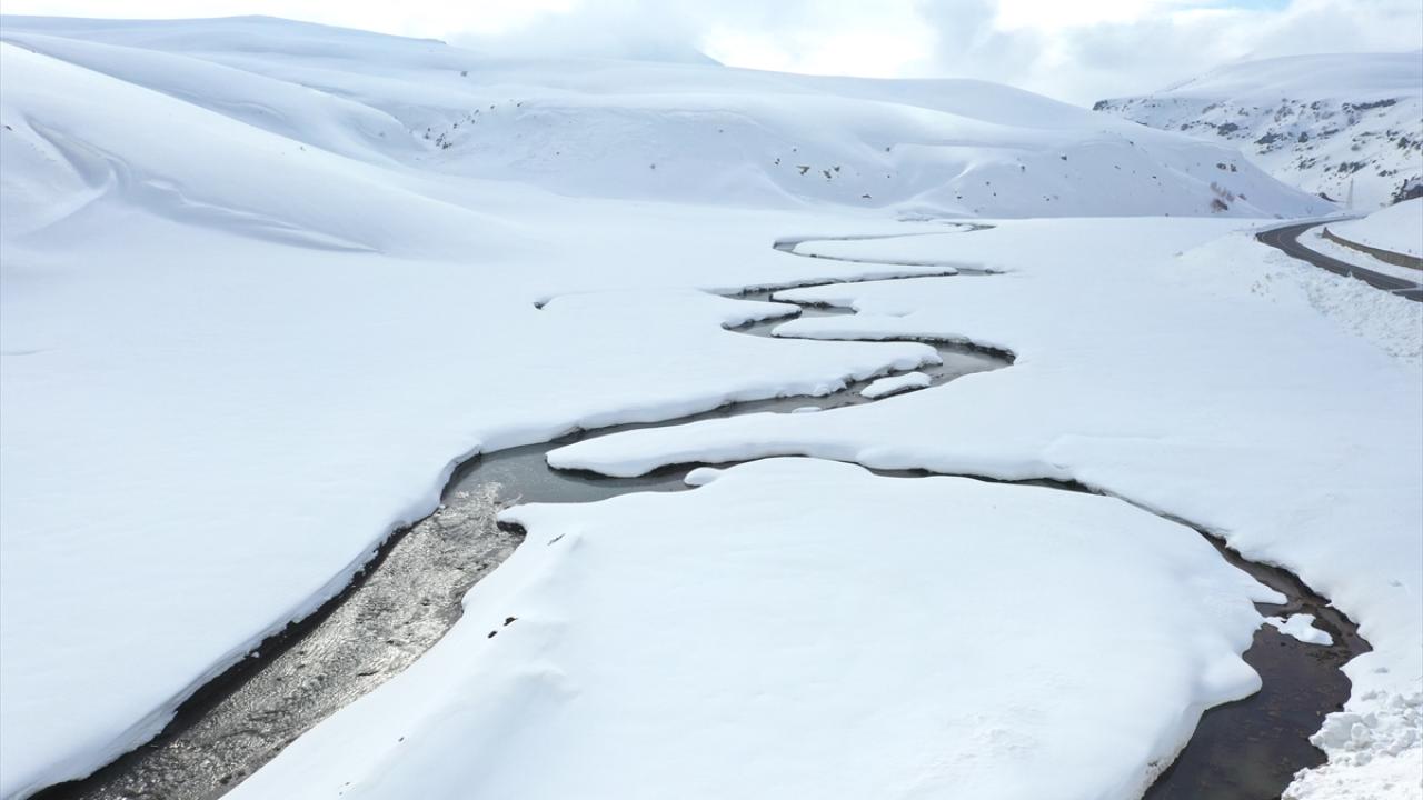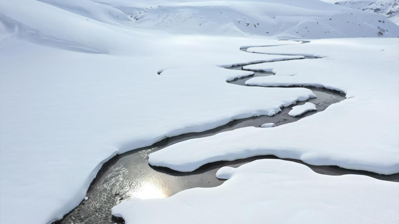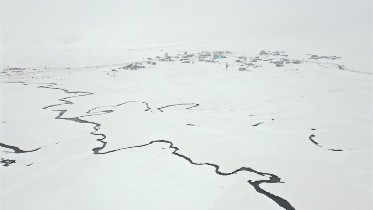 Ağrı'nın yüksek rakımlı köylerinde kilometrelerce uzunluktaki menderesler kar yağışıyla ayrı bir güzelliğe büründü.