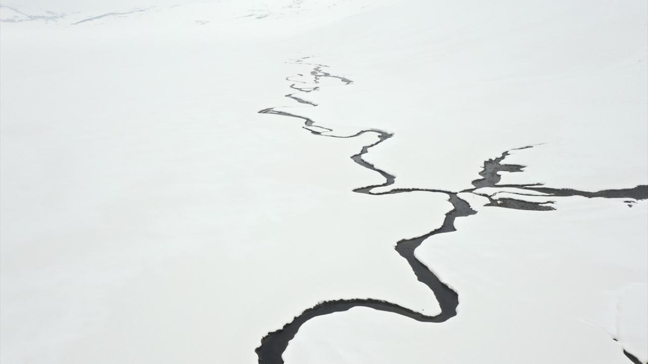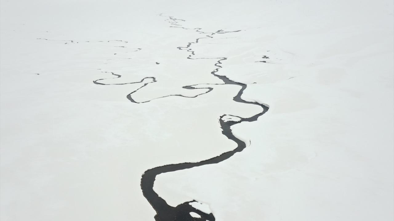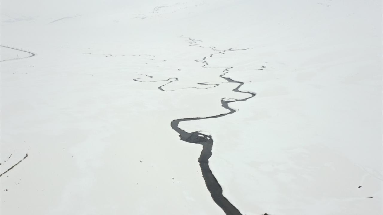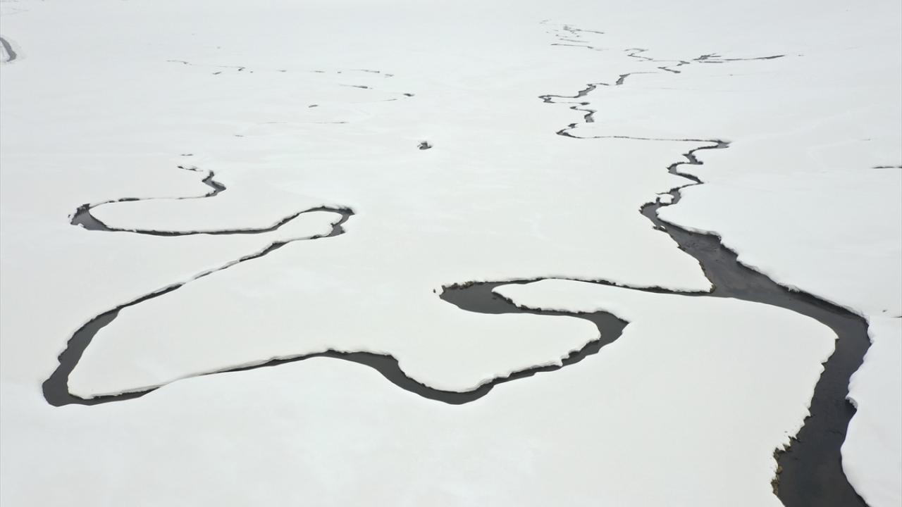 Ağrı'nın yüksek rakımlı köylerinde kilometrelerce uzunluktaki menderesler kar yağışıyla ayrı bir güzelliğe büründü.
