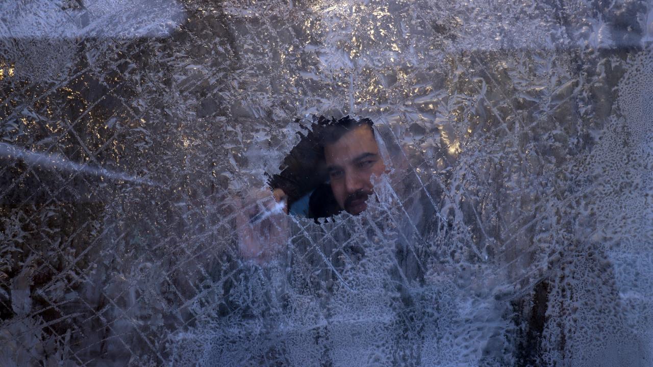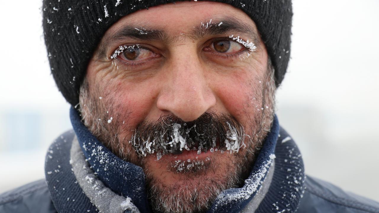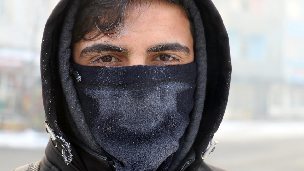Ağrı`da sokağa çıkan vatandaşların kirpiklerinde kırağı oluştu.