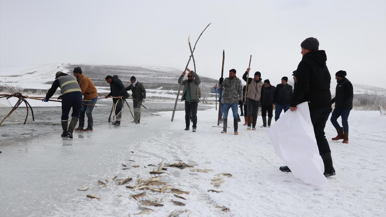 Zorlu balık avcılığında zaman zaman buz kırılması sonucu tehlike atlatan köylüler, meşakkatli bir sürecin sonunda avladıkları balıklarla evlerine mutlu dönüyor.
