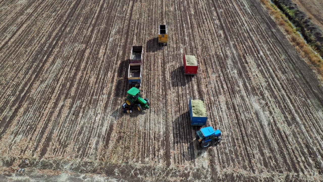 Aldıkları tohumları ilkbahar aylarında tarlalarına eken çiftçiler, aylarca emek vererek bakımını yaptıkları silajlık mısırı hasat etmeye başladı.