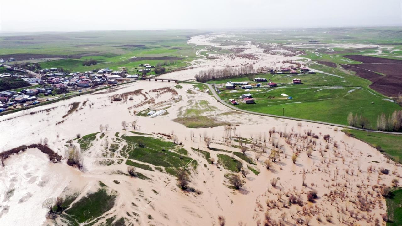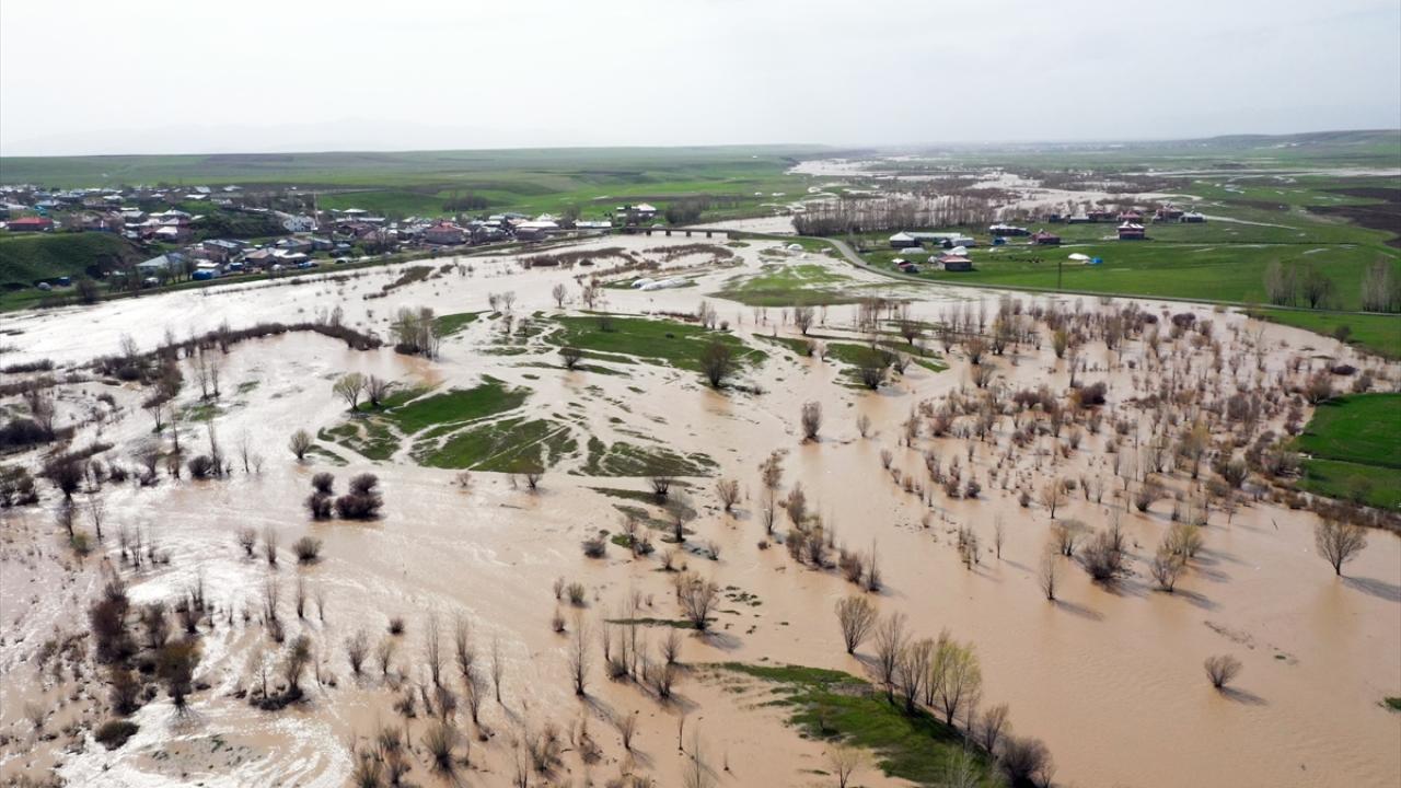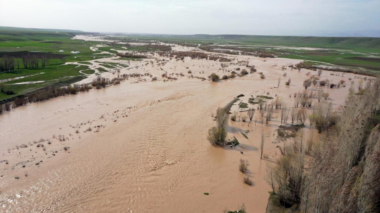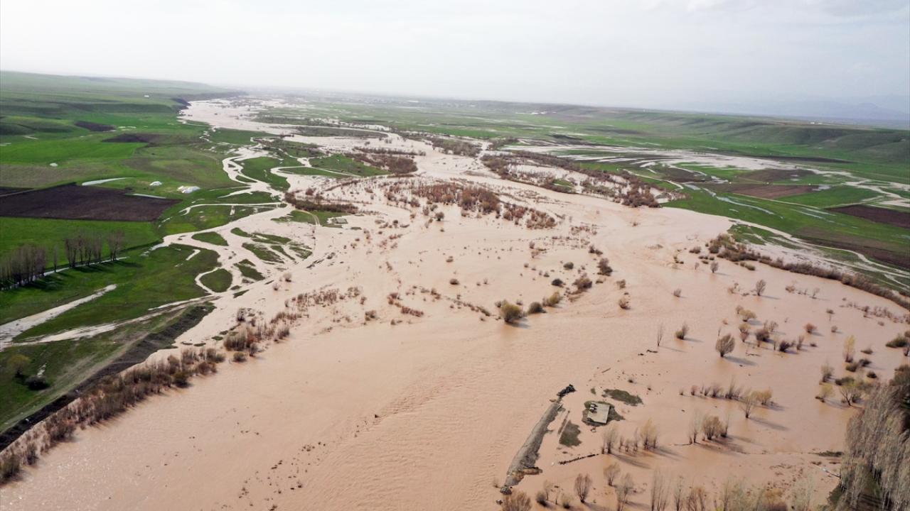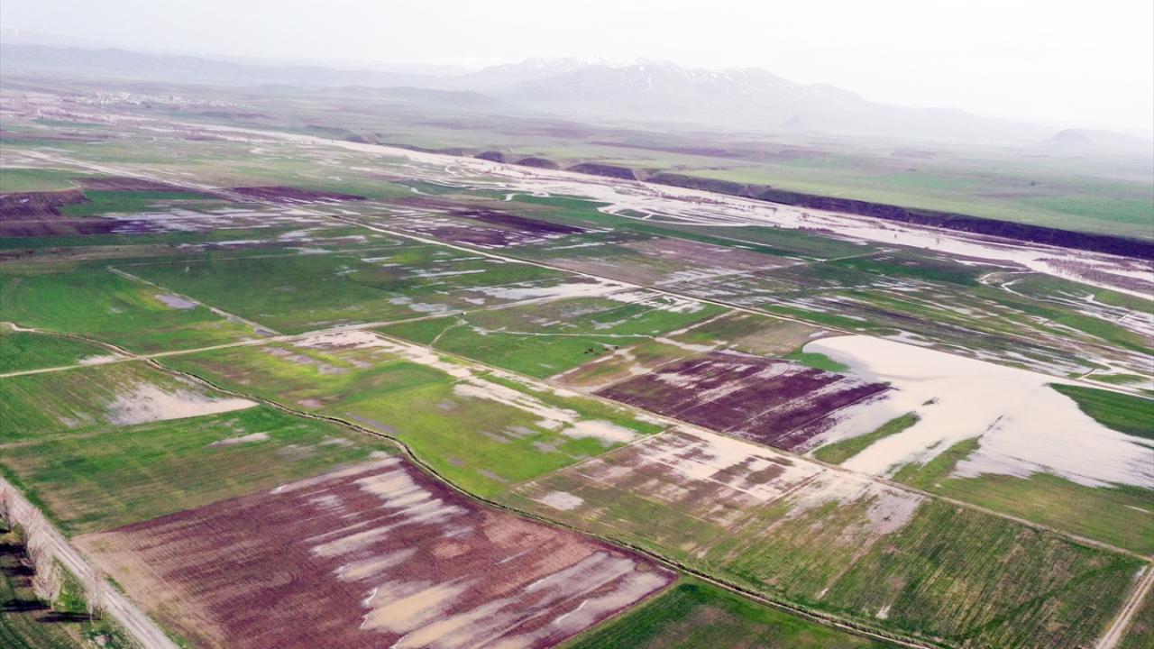 Ağrı'da sağanak nedeniyle Murat Nehri'nin taşması sonucu tarım arazileri zarar gördü.