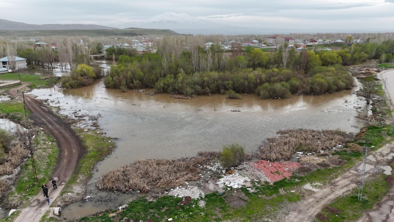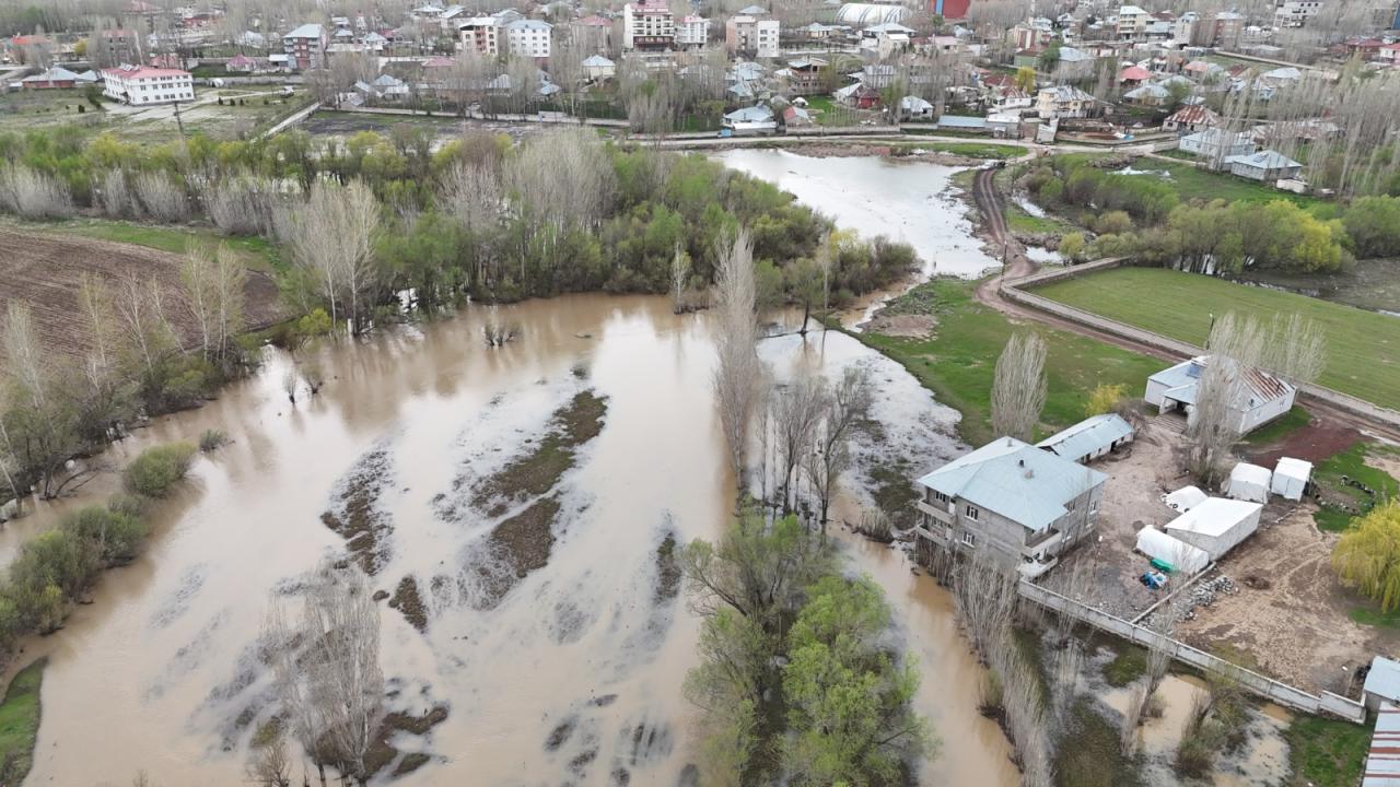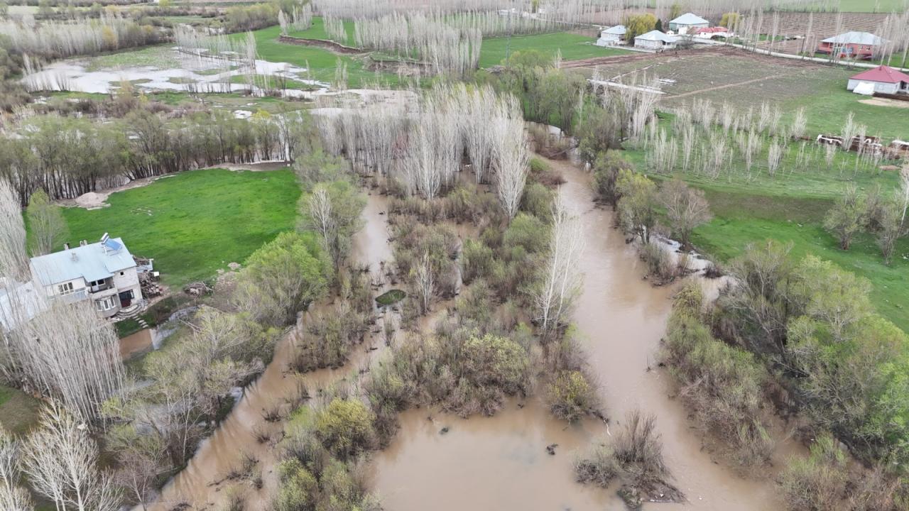 Ağrı'da etkili olan sağanak nedeniyle Badişan Deresi'nin taşması sonucu bazı evler ve tarım arazileri sularla kaplandı.