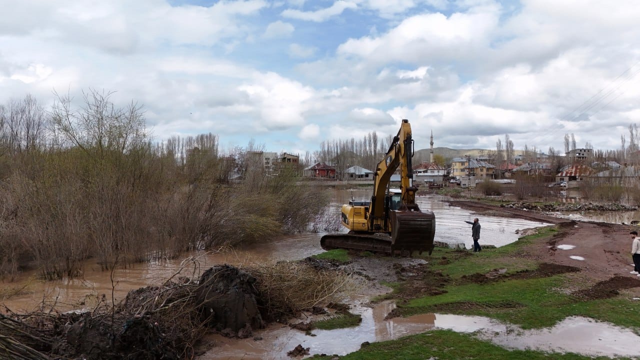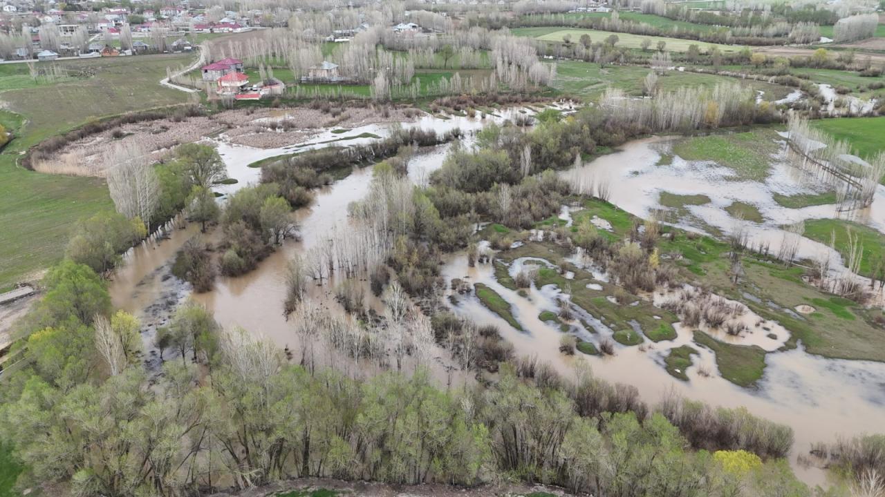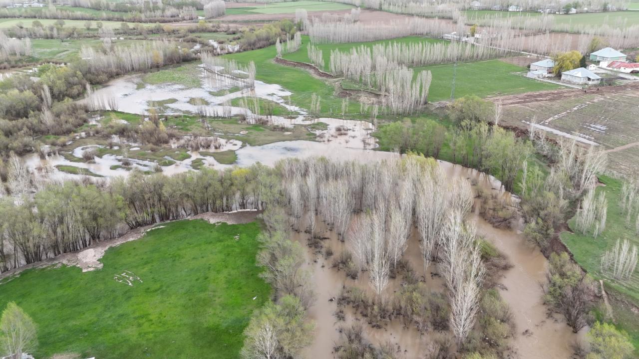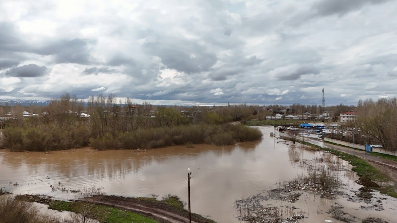 Ağrı'da etkili olan sağanak nedeniyle Badişan Deresi'nin taşması sonucu bazı evler ve tarım arazileri sularla kaplandı.