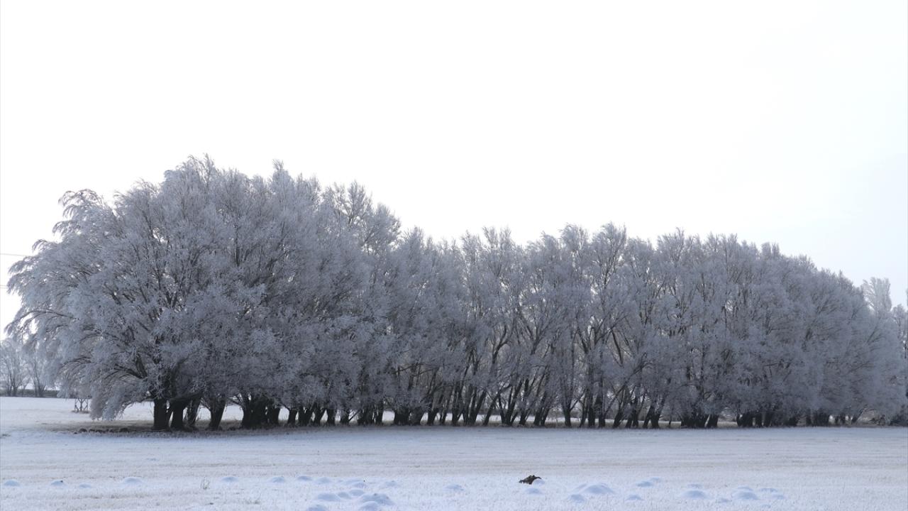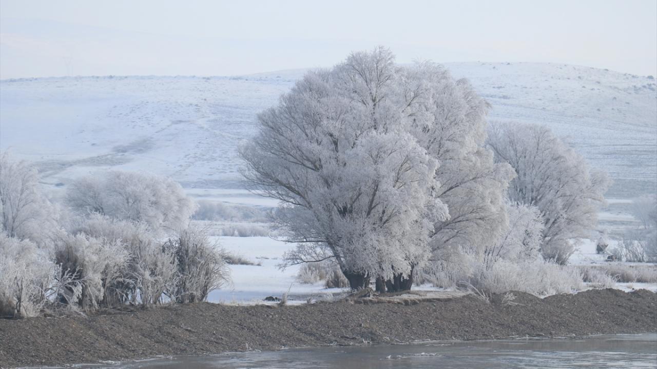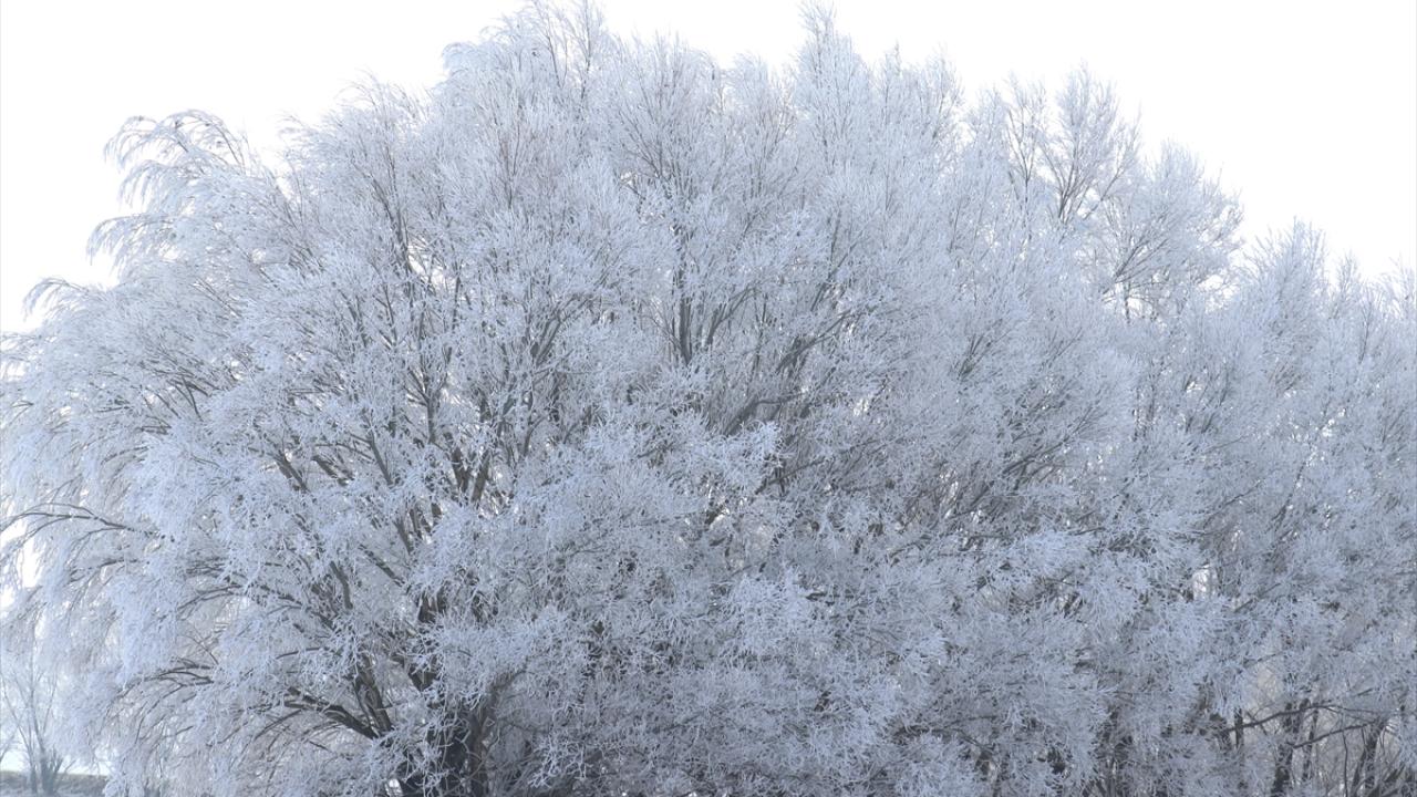 Ağrı'da soğuk havanın etkisiyle ağaçlar kırağı tuttu