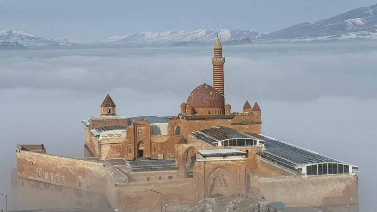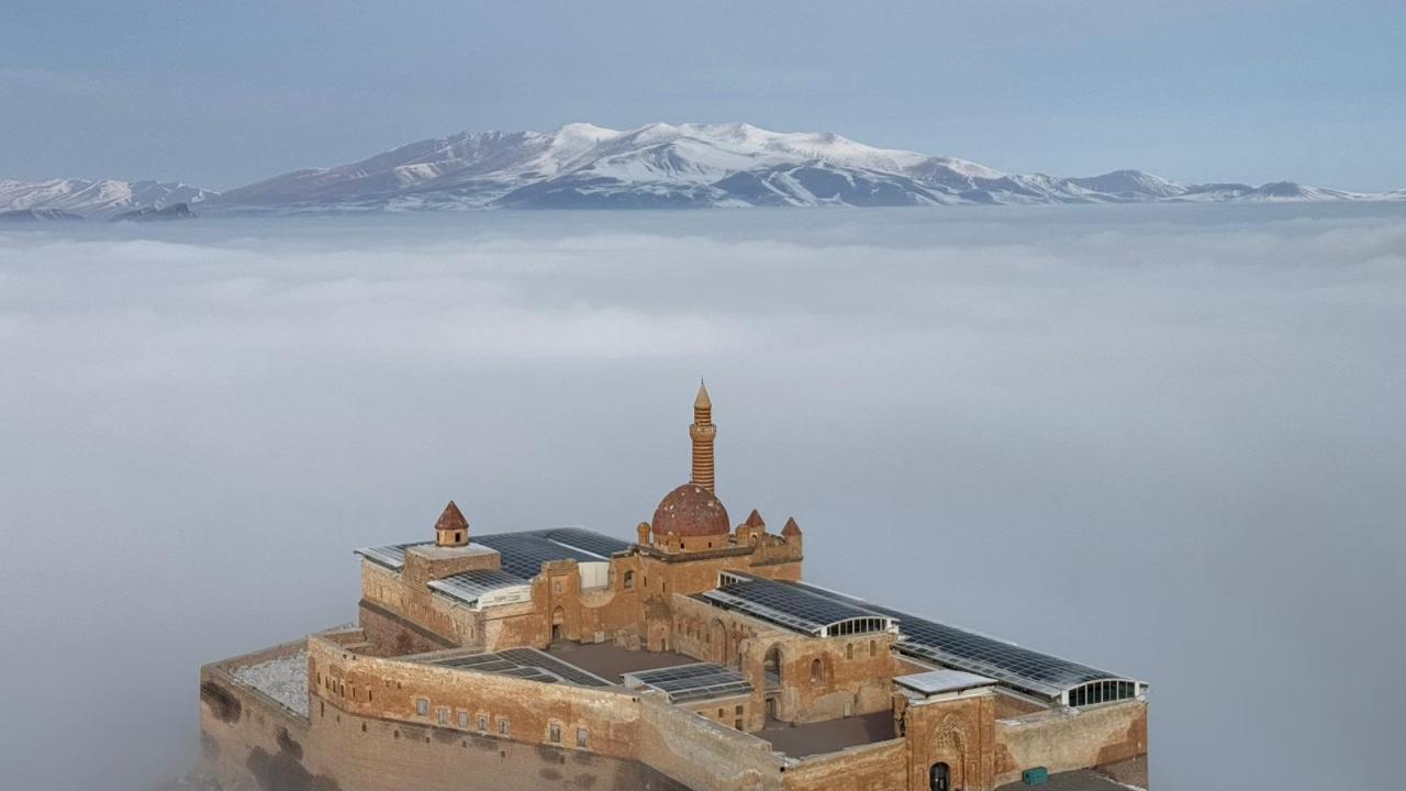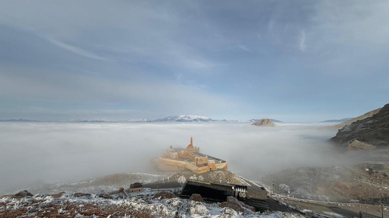 Ağrı'nın Doğubayazıt ilçesinde bulunan tarihi İshak Paşa Sarayı ve çevresi sisle kaplandı.