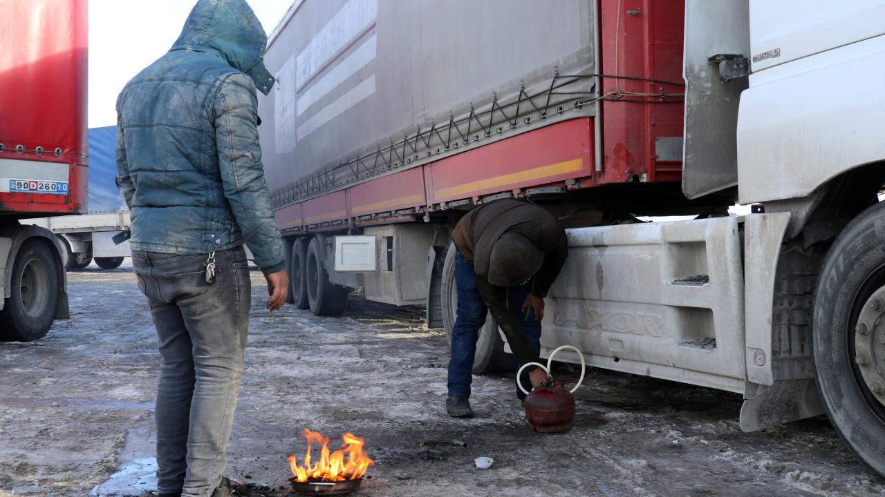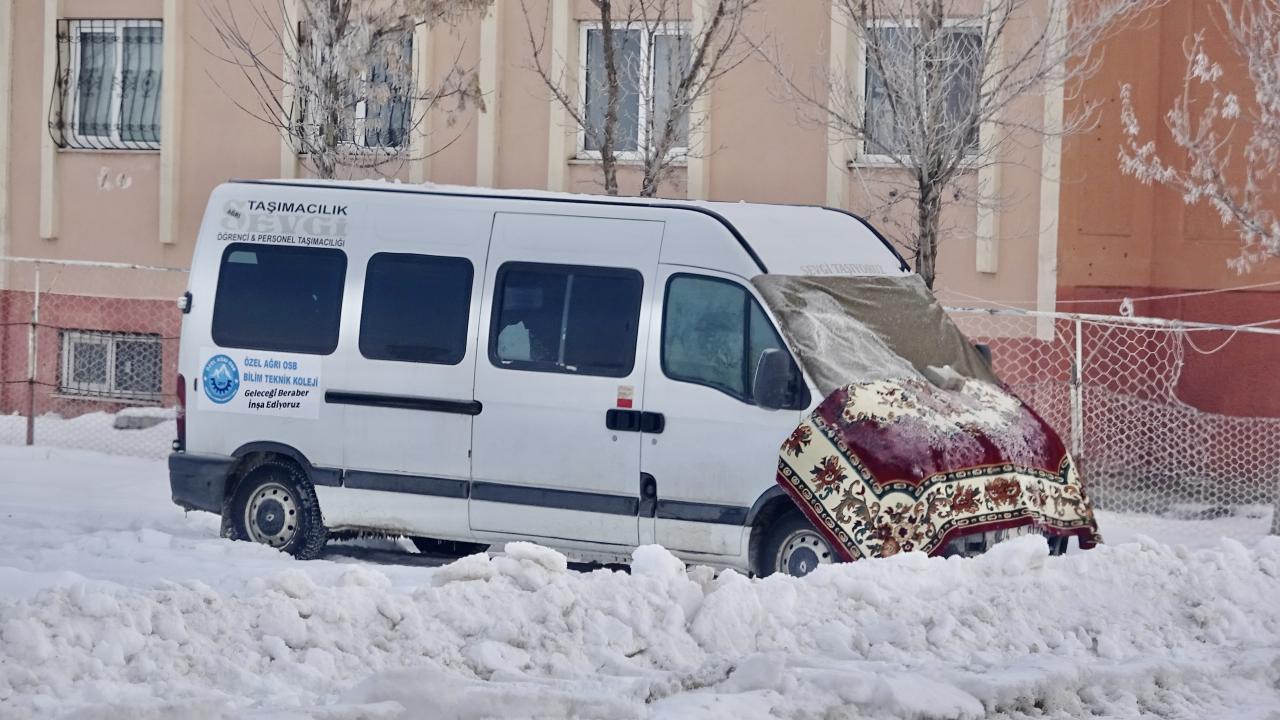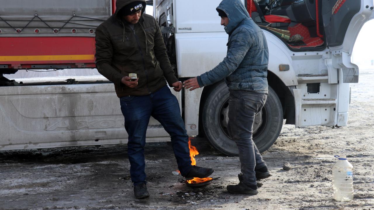 Ağrı yeniden dondurucu soğuklara teslim oldu,termometreler eksi 20 dereceyi gösterdi. Sürücüler, yakıt depolarının altına ateş yakarak araçlarını çalıştırma uğraşı verdi.