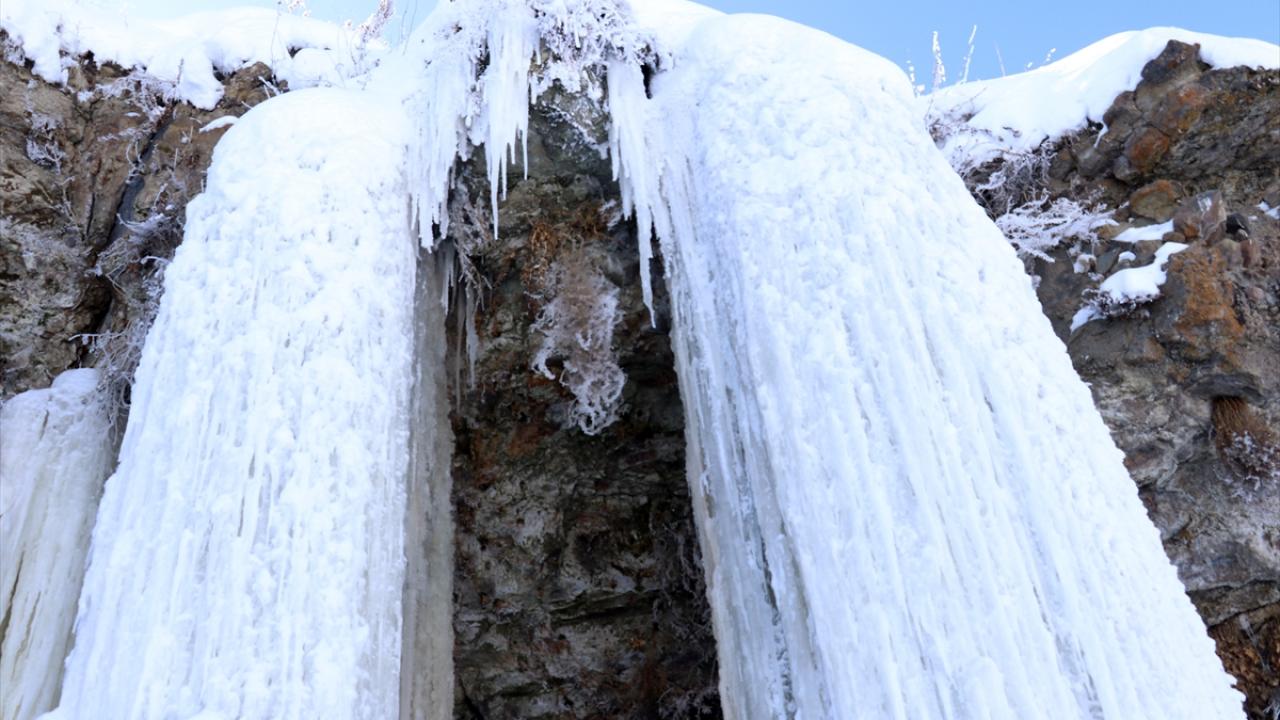 Dondurucu soğukların yaşandığı Ağrı`da 5 metrelik buz sarkıtları oluştu.