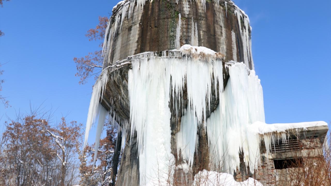 Dere, nehir, göletlerin donduğu kentte, şelaleler ile bina çatılarında buz sarkıtları oluştu.
