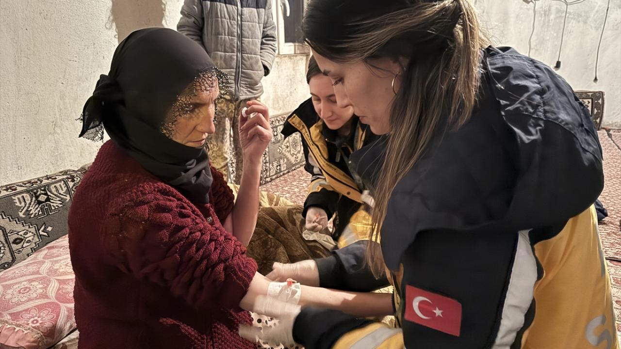 Yolun ulaşıma açık olduğu Süleymankümbet köyüne kadar giden sağlık ekipleri, ulaşıma kapalı olan yaklaşık 4 kilometrelik mesafeyi de paletli ambulansla katederek mezraya ulaştı.