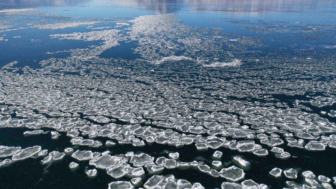 Yuvarlak, kare ve küp şeklindeki buz kütleleri, dronla görüntülendi.