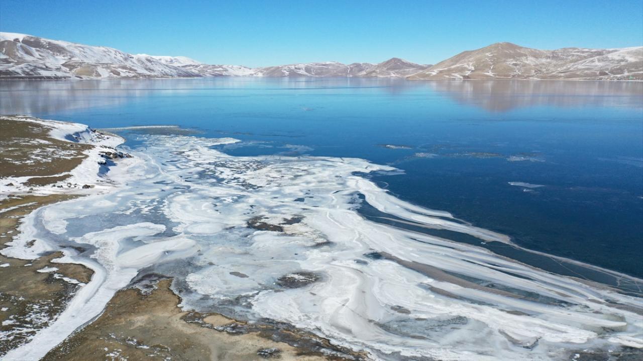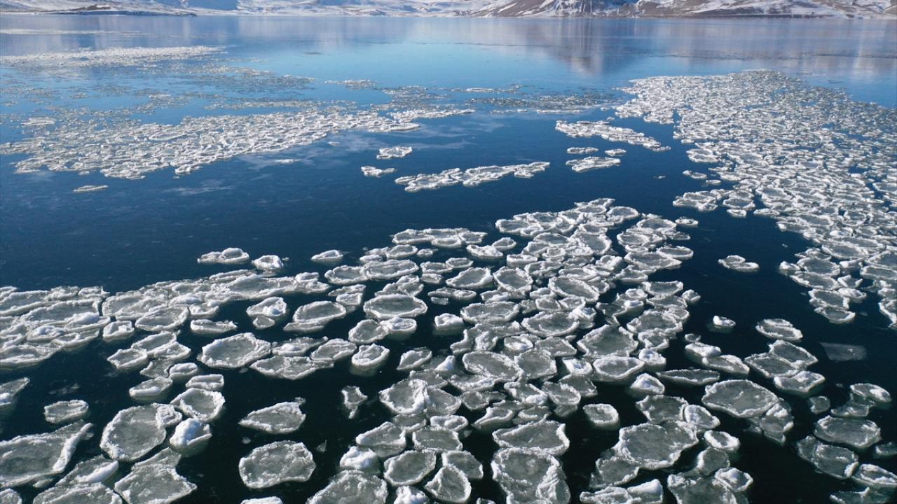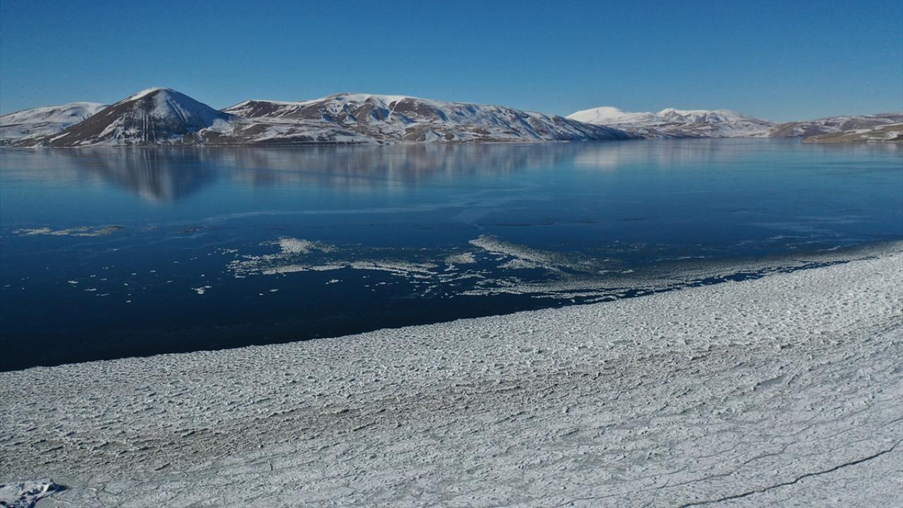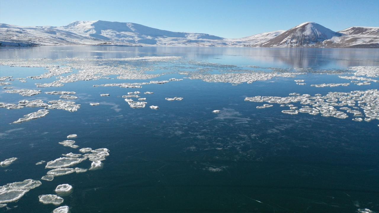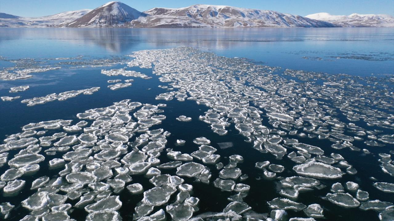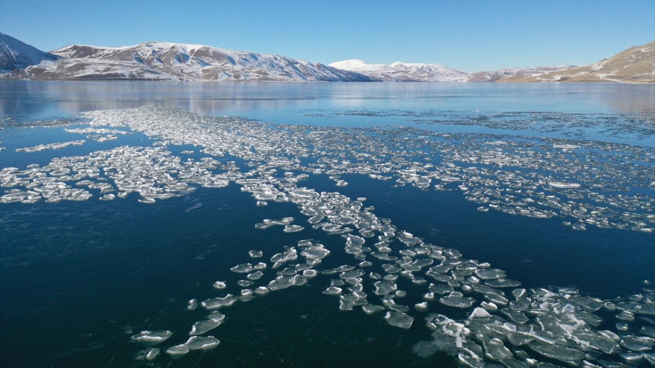 Bölgede çetin geçen kış mevsimi nedeniyle ilkbahar aylarına kadar buzla kaplı kalan gölde, çeşitli şekillerde buz kütleleri ortaya güzel görüntüler çıkardı.