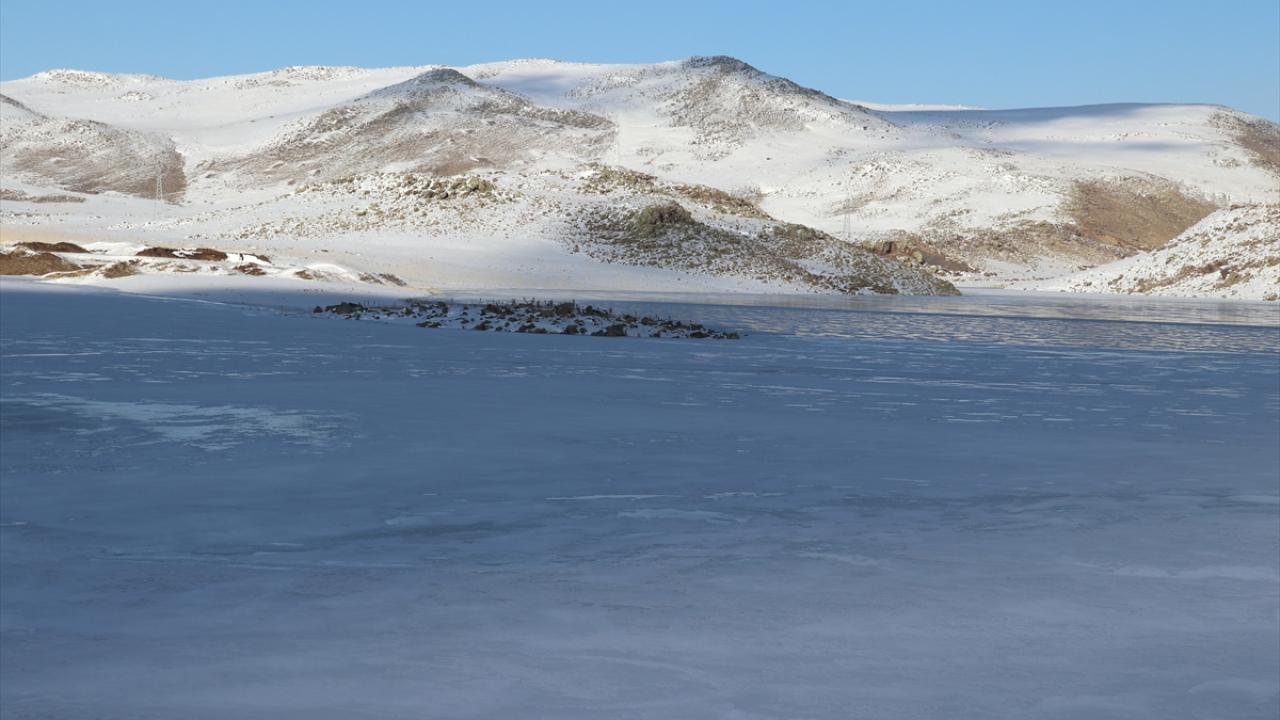 Yukarı Toklu köyünün üst tarafında bulunan baraj, dondurucu soğukların etkisiyle buzla kaplandı.