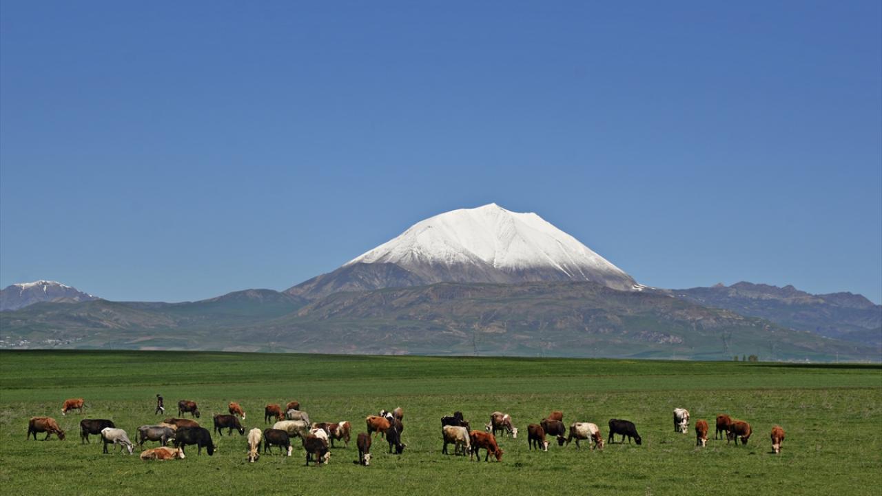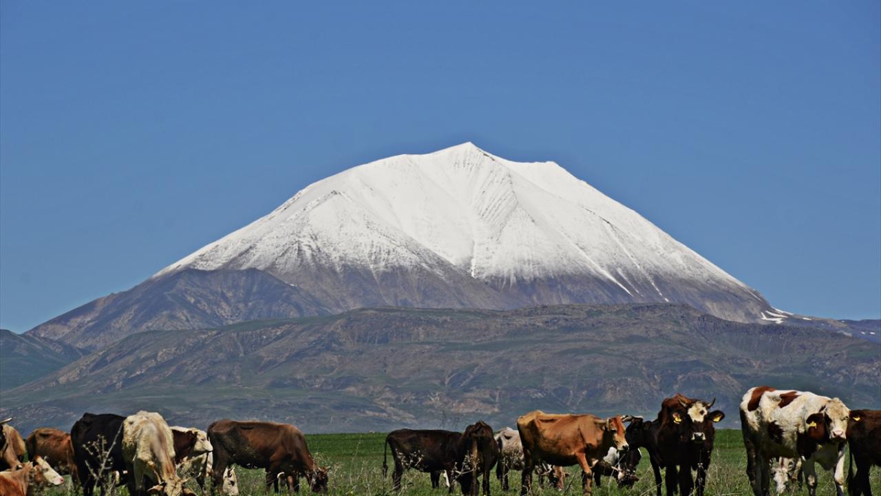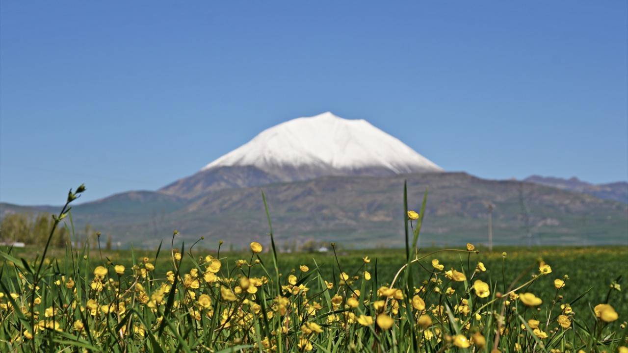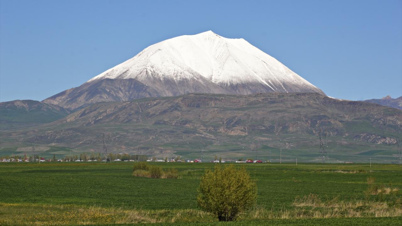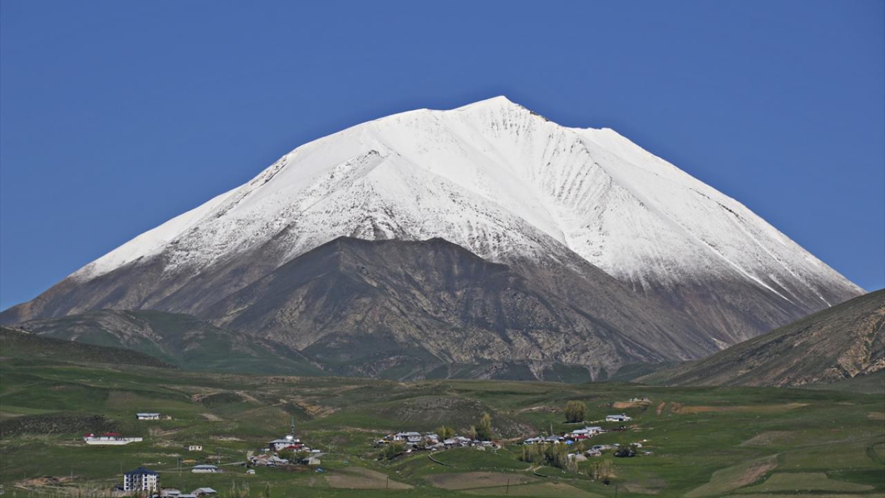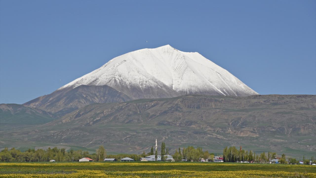 Ağrı'daki Kösedağ'ın zirvesi baharda karla kaplandı