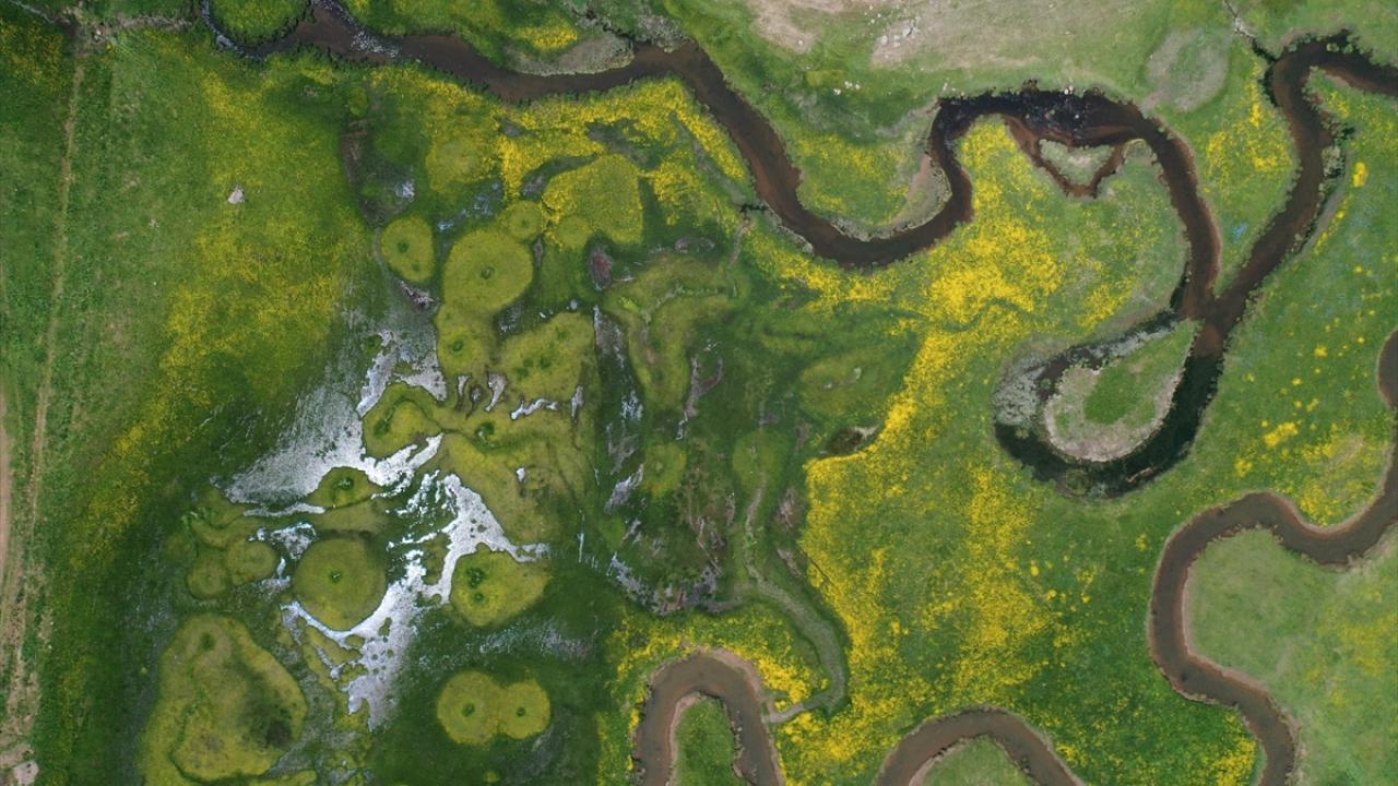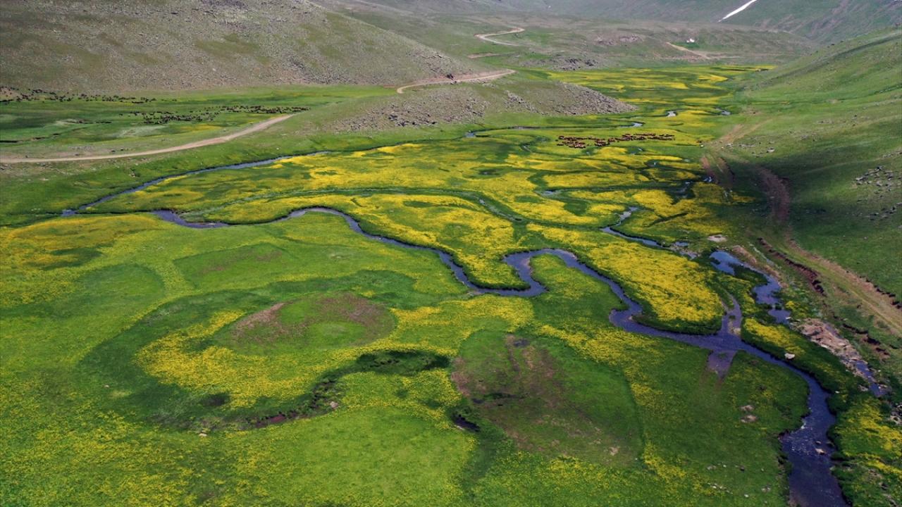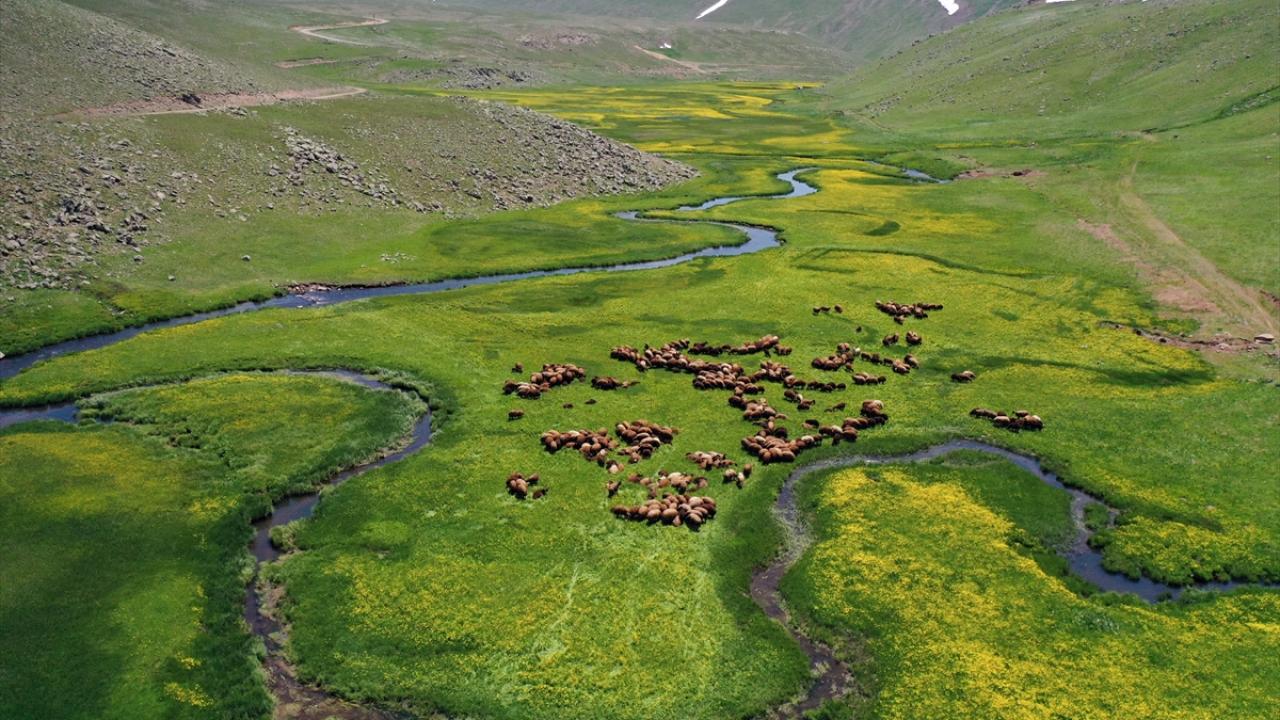 Zengin bitki örtüsüyle yaz aylarında göçerler ile besicileri ağırlayan menderesler, dronla görüntülendi.