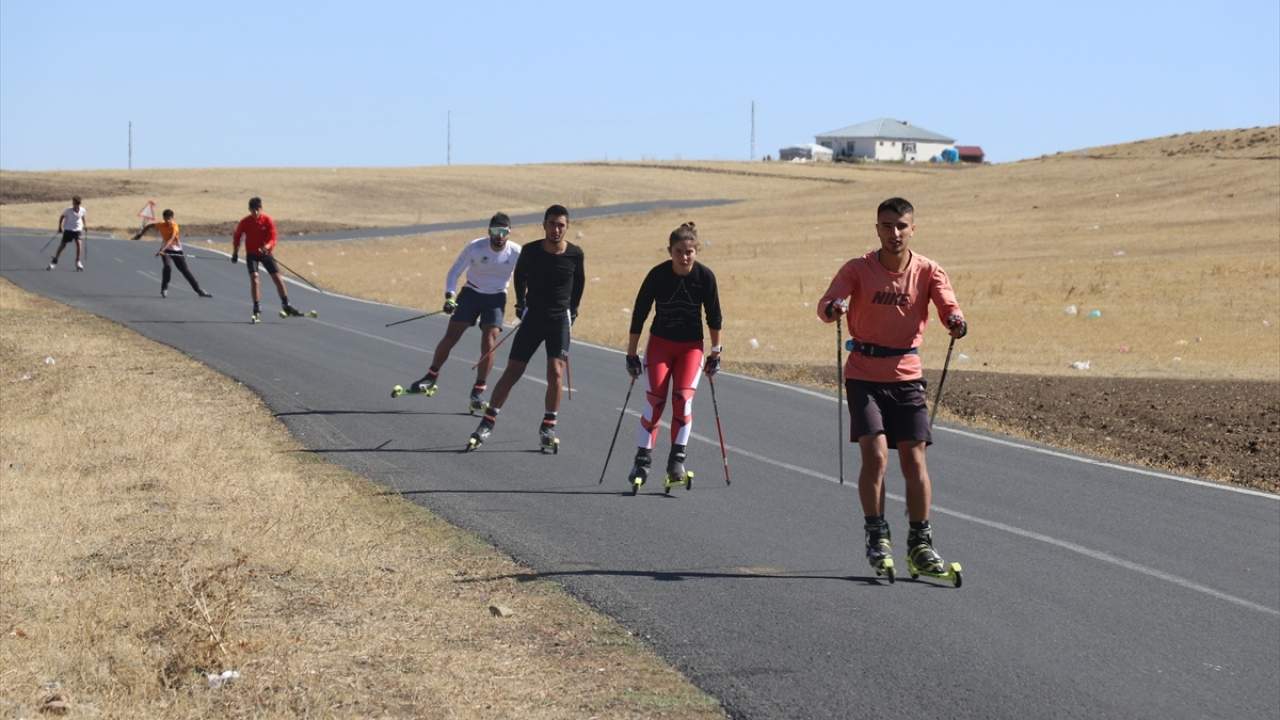 Ağrılı milli kayakçılar olimpiyat hedefiyle asfaltta güç depoluyor